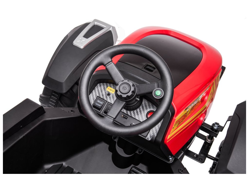Dětský elektrický traktor BLT s ultra výkonným elektrickým motorem 2x200W a velkými EVA pěnovými koly hravě zvládne i nerovný terén.