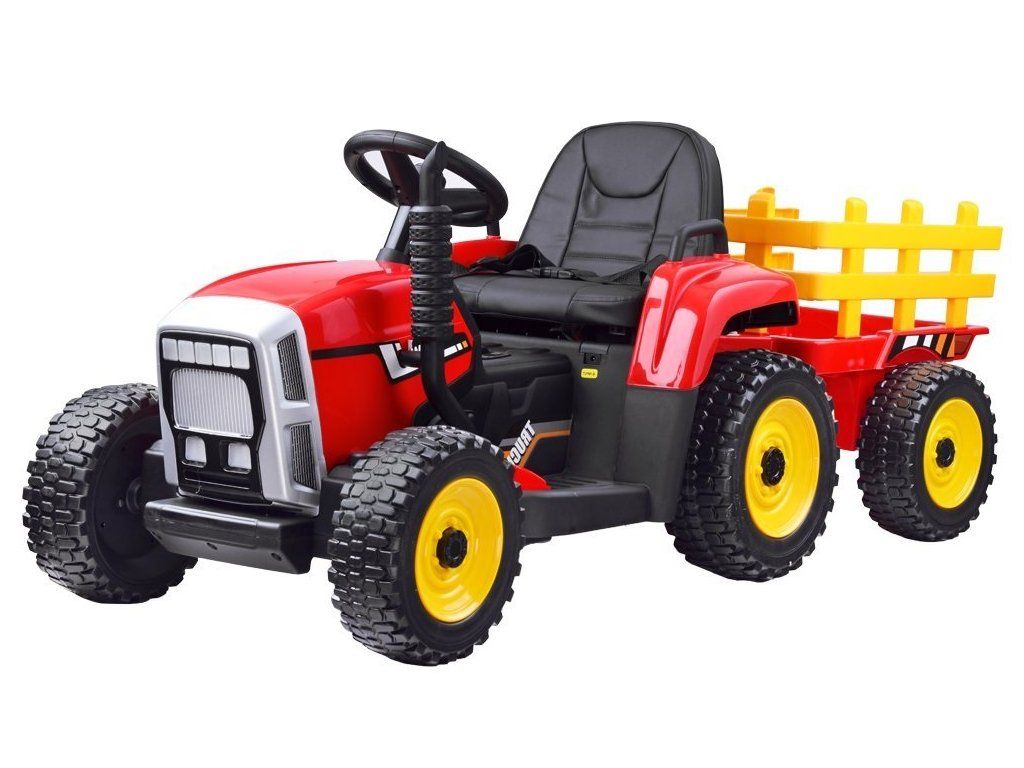 Elektrický traktor má široká tvarovaná kola a díky dálkovému ovladači smíte kontrolovat jízdu dítěte. Dítě smí jet rychlostí od 3 do 6 km/h, záleží na něm, jak rychle chce jet. Dálkový ovladač s frekvencí 2,4 GHz umožňuje jízdu vpřed, vzad, doprava a doleva. Traktor se řídí velmi jednoduše, dítě má k dispozici jeden pedál plynu, traktor se automaticky zastaví, po spuštění nohy z tohoto pedálu.