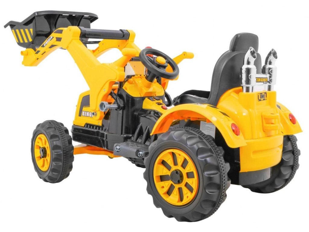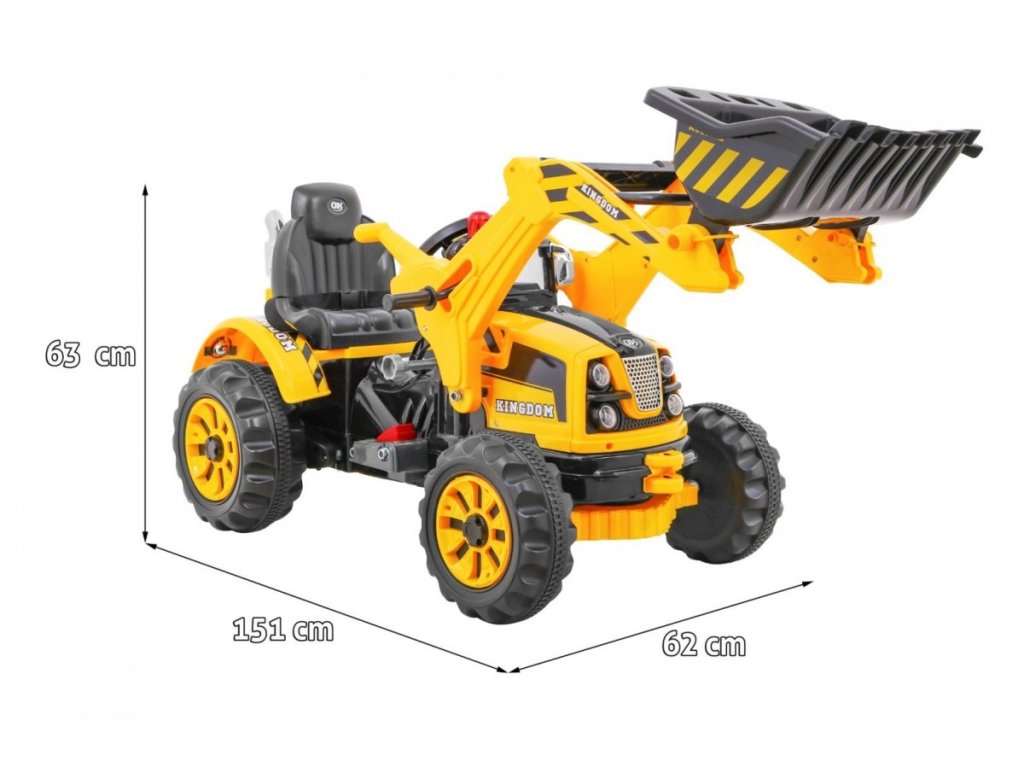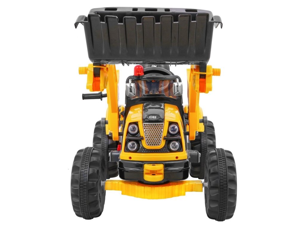 Dětský elektrický traktor, který je díky masivní konstrukci, mohutným kolům a dvěma elektrickým motorům vhodný pro ničím nerušenou jízdu. S jízdou si poradí i ti nejmenší. Traktor je velký, silný a vyrobený z nejkvalitnějšího plastového materiálu v moderním stylu a uspokojí chutě nejmladších motoristických nadšenců. Elektrický traktor má pohyblivou lžíci. Hračka doporučená výrobcem od 3 let. Má certifikát CE.
