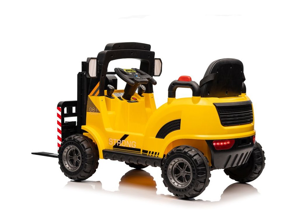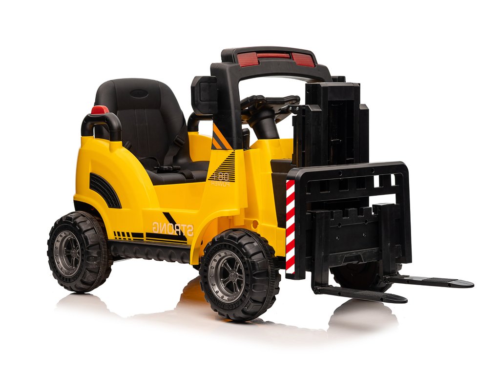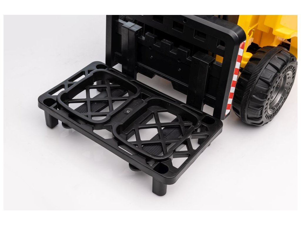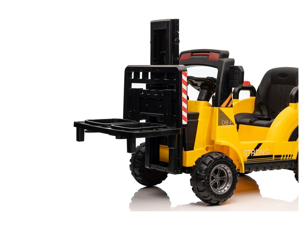 Dětský elektrický vysokozdvižný vozík se díky své konstrukci a mohutným kolům přizpůsobí nejen zpevněnému terénu. Má dva motory o celkovém výkonu 90W. Ovládání je velice jednoduché, stačí zmáčknout plynový pedál a můžete vyrazit do terénu. Po spuštění nohy z plynového pedálu se vozík automaticky zastaví. Jízdu jistě zpříjemní možnost pouštění hudby pomoci USB a MP3.