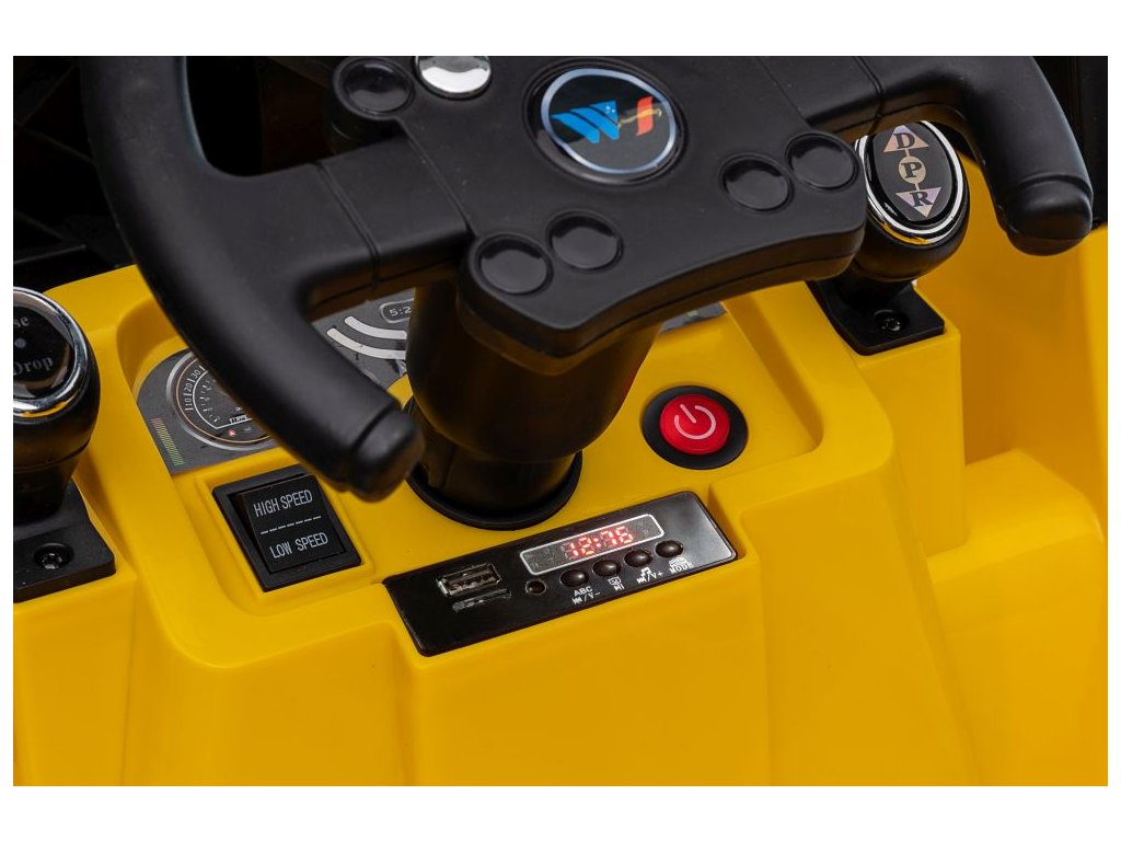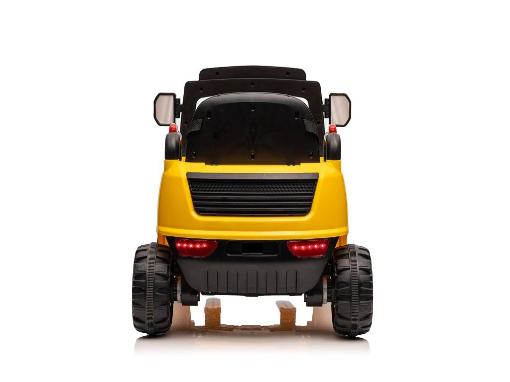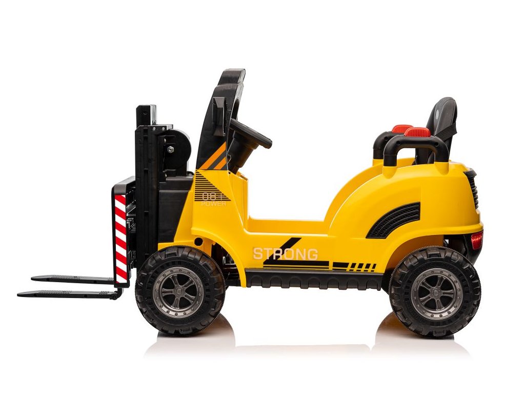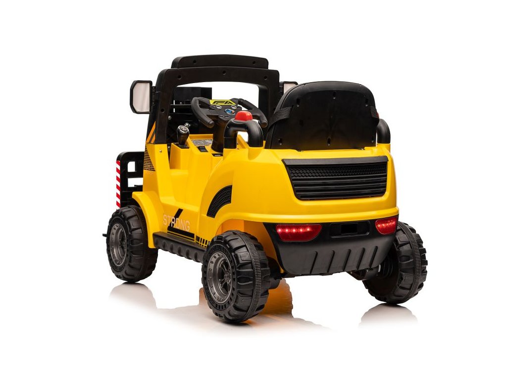 Dětský elektrický vysokozdvižný vozík se díky své konstrukci a mohutným kolům přizpůsobí nejen zpevněnému terénu. Má dva motory o celkovém výkonu 90W. Ovládání je velice jednoduché, stačí zmáčknout plynový pedál a můžete vyrazit do terénu. Po spuštění nohy z plynového pedálu se vozík automaticky zastaví. Jízdu jistě zpříjemní možnost pouštění hudby pomoci USB a MP3.