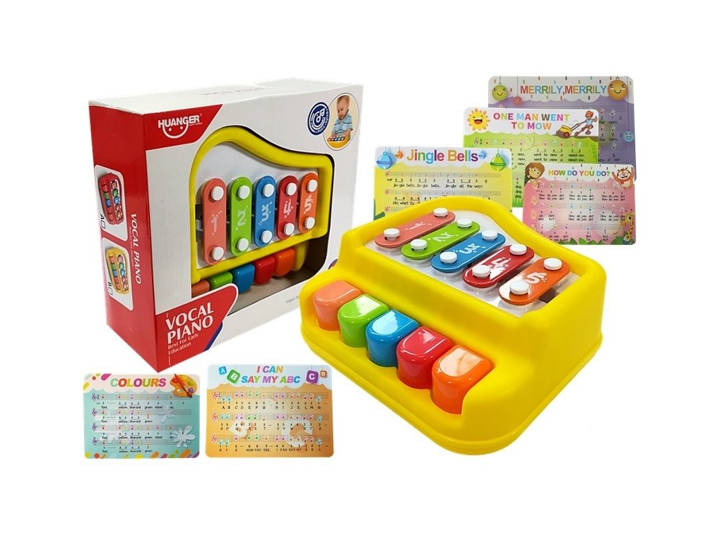 Skvělá hračka pro všechny malé hudebníky. Nástroj kombinuje kovové destičky s klávesami, které jsou označeny různými čísly a barvami. Součástí sady jsou noty, které jsou zvýrazněny barevnými puntíky, díky čemuž se dítě rychle naučí hrát.
