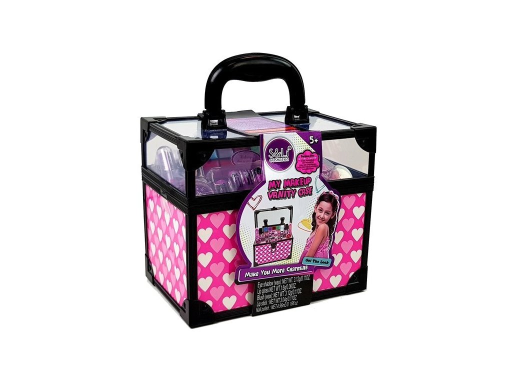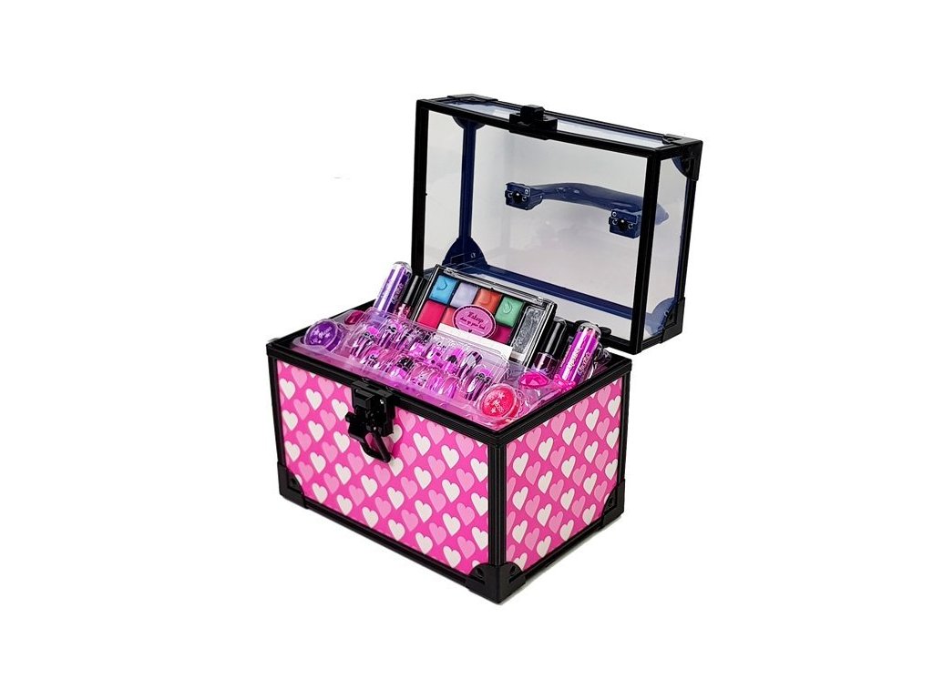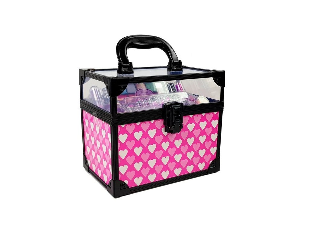 Dětský růžový kufřík s rukojetí, který umožní skladovat malým slečnám svou kosmetiku.