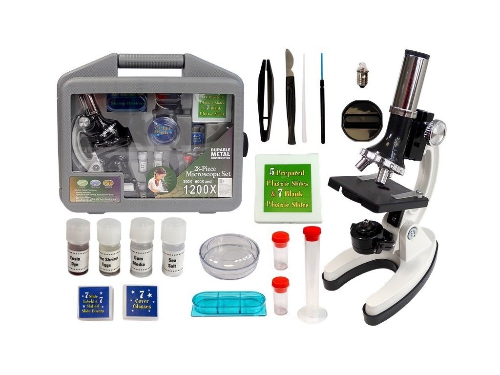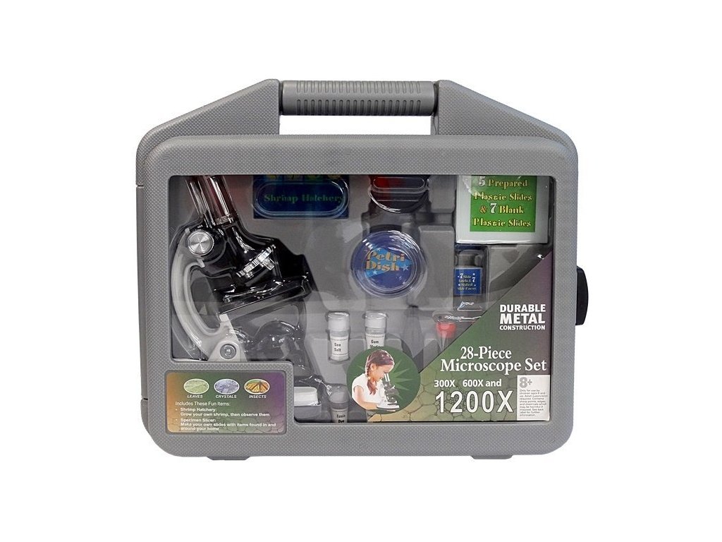Tvůj malý vědec bude nyní schopný zkoumat přírodu kdekoliv díky přenosnému kufru, který obsahuje celou nezbytnou sadu. Skvělý způsob, jak dítě seznámit s vědou a přírodou. Bude moci objevit, jak vypadá obrázek v novinách, list či tvůj prst nebo vlasy pod zvětšením. Mikroskop má možnost nastavení zaostření. Mikroskopem se každodenní předměty stanou neuvěřitelným oknem do světa mikrobiologie.