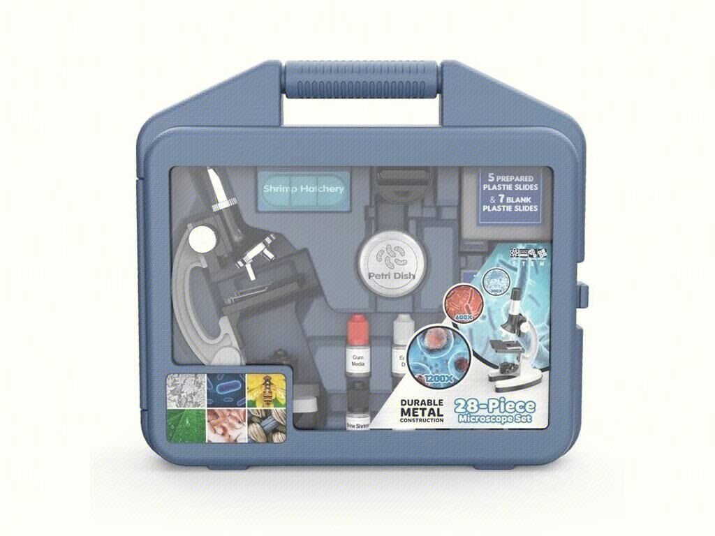Tento 28dílný mikroskopický set je ideální pro malé vědce, kteří chtějí objevovat a zkoumat mikro svět. Mikroskop je uložen v praktickém kufříku, což usnadňuje jeho přenášení a skladování. Set obsahuje kvalitní kovový mikroskop s maximálním zvětšením až 1200x, různé vzorky a nástroje pro přípravu vlastních preparátů.