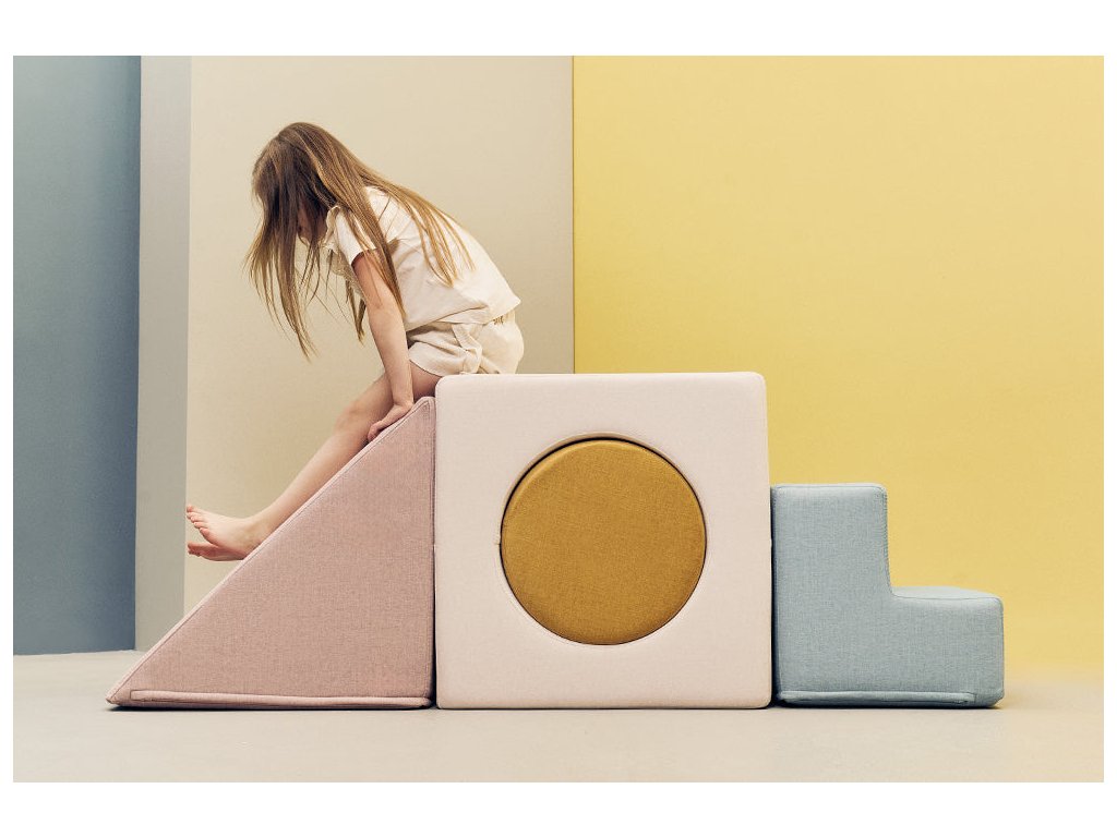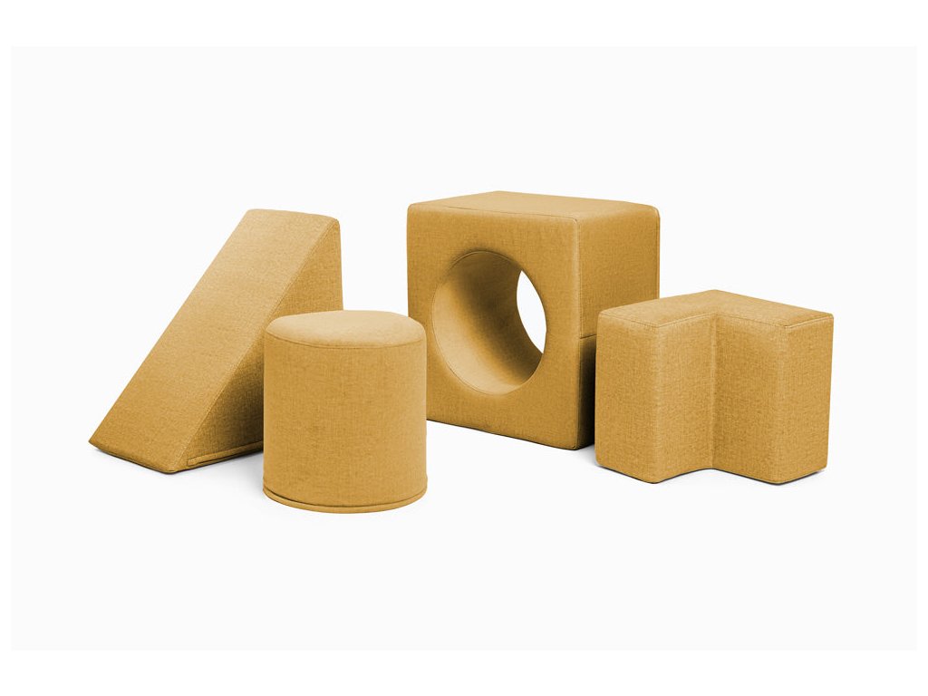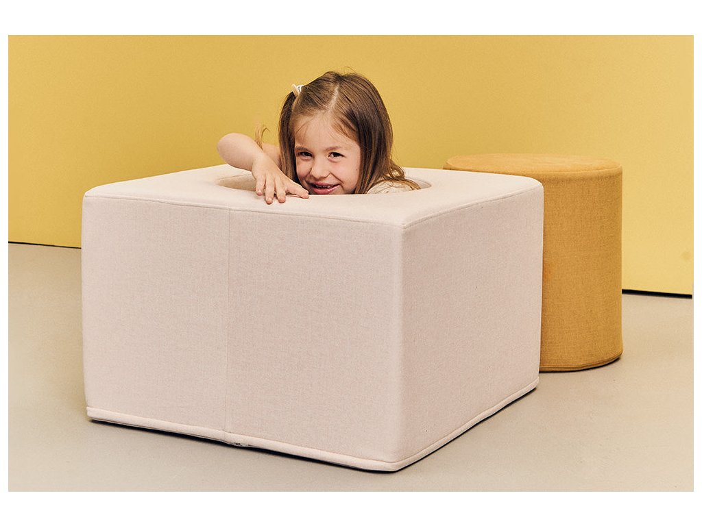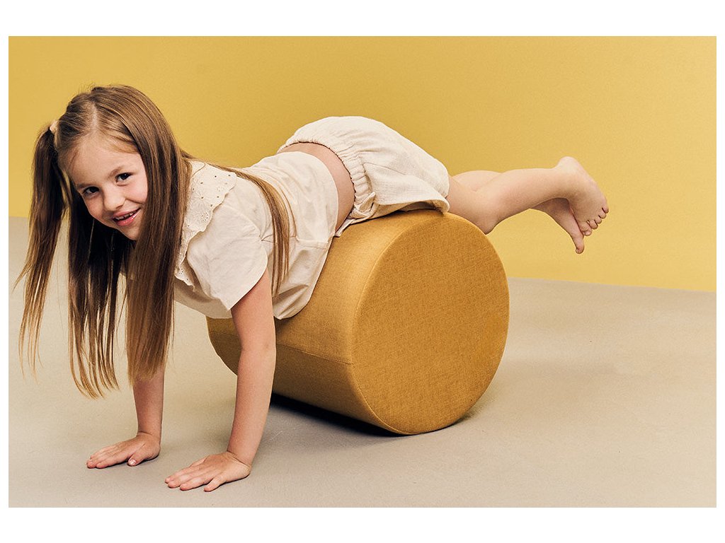 Víceúčelový taburet: Perfektní jako válec, který dětem pomáhá posilovat střed těla a zlepšovat rovnováhu. Je to také pohodlný taburet, který unese i dospělého a poskytuje útulné místo k sezení.