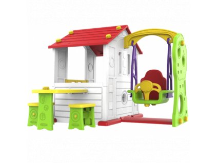 Pohádkový zahradní domeček s prostorným interiérem a skluzavkou. Domeček má otevírací dveře a odolnou konstrukci. Skluzavka může být upevněna na libovolnou stranu domečku a předsíně. Hračka je vyrobena z velmi kvalitních materiálů a všechny stěny a komponenty jsou vyrobeny z dvojité vrstvy plastu. Zahradní domeček je odolný vůči povětrnostním vlivům a UV záření. Vhodná věková kategorie od 1 roku. Výrobek má evropský cetifikát bezpečnosti CE. Made in Korea.