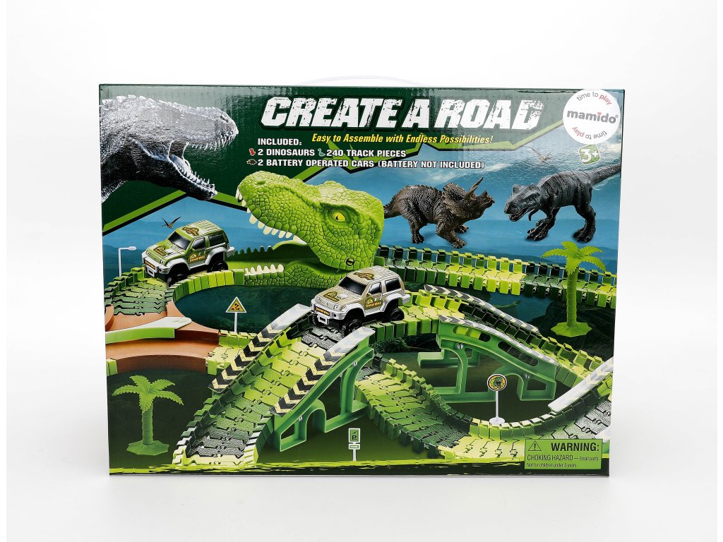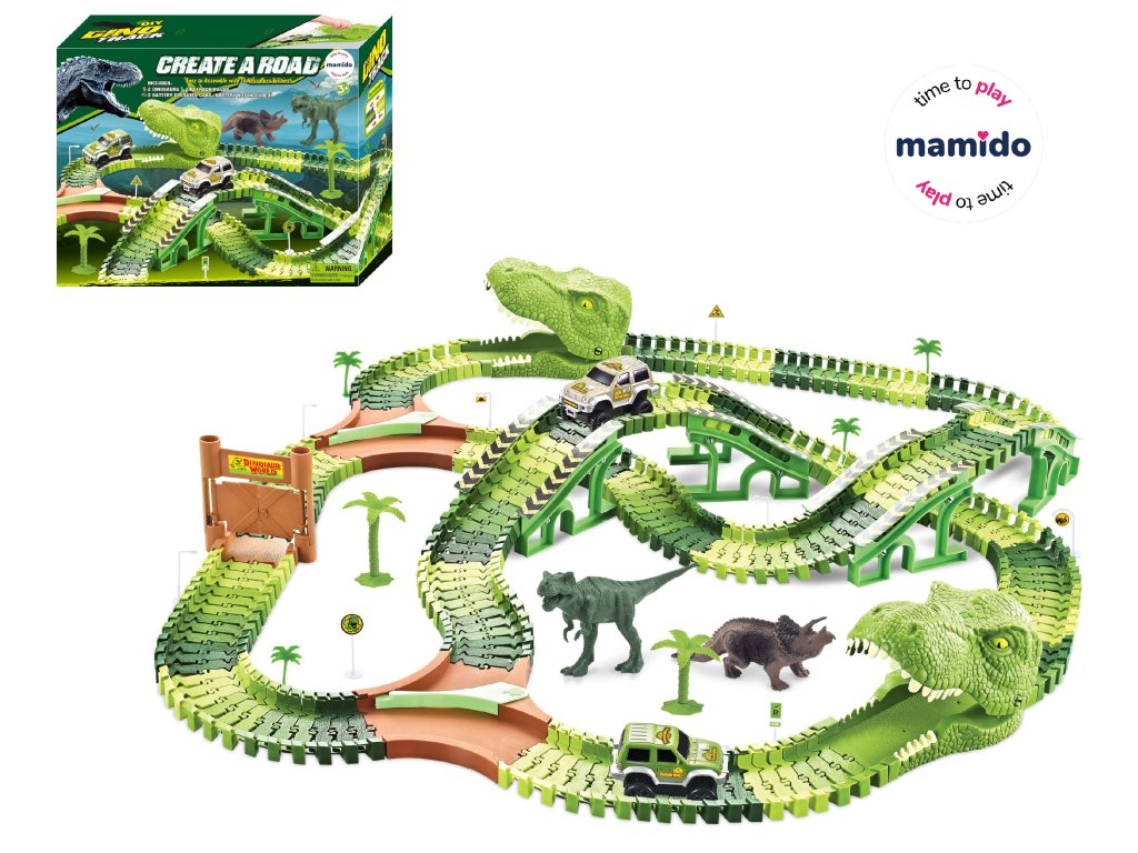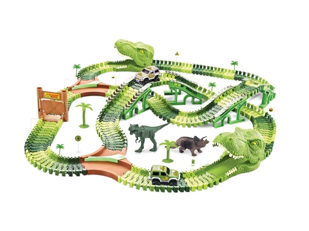 Součástí setu jsou stromy, dinosauři, most a další doplňky, které dělají hru ještě realističtější. Díky jednoduchému systému skládání si děti mohou snadno dráhu přestavovat podle své fantazie.