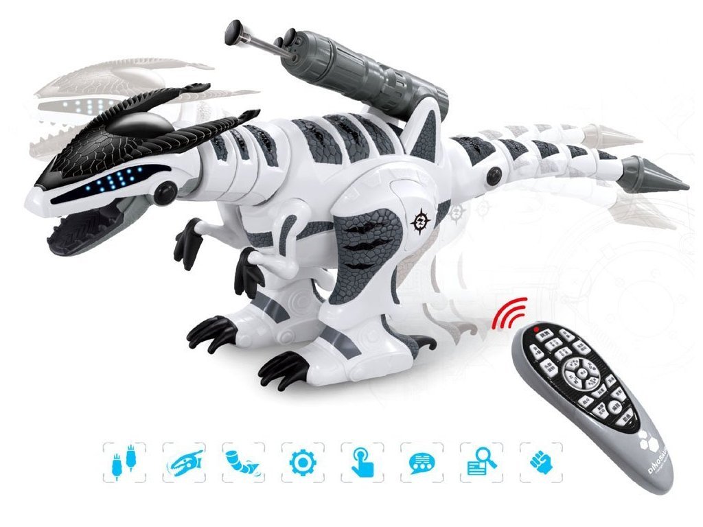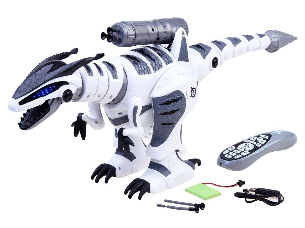 Dinosaurus na dálkové ovládaní je nabídka pro malé i velké děti, které mají rádi technické inovace. Interaktivní dinosaurus může chodit vpřed a vzad, odbočit doleva a doprava, tančit, mluvit jazykem robotů, zavrtět hlavou, vrtět ocasem a střílet. Všechny tyto funkce zajistí mnoho hodin kreativní zábavy.