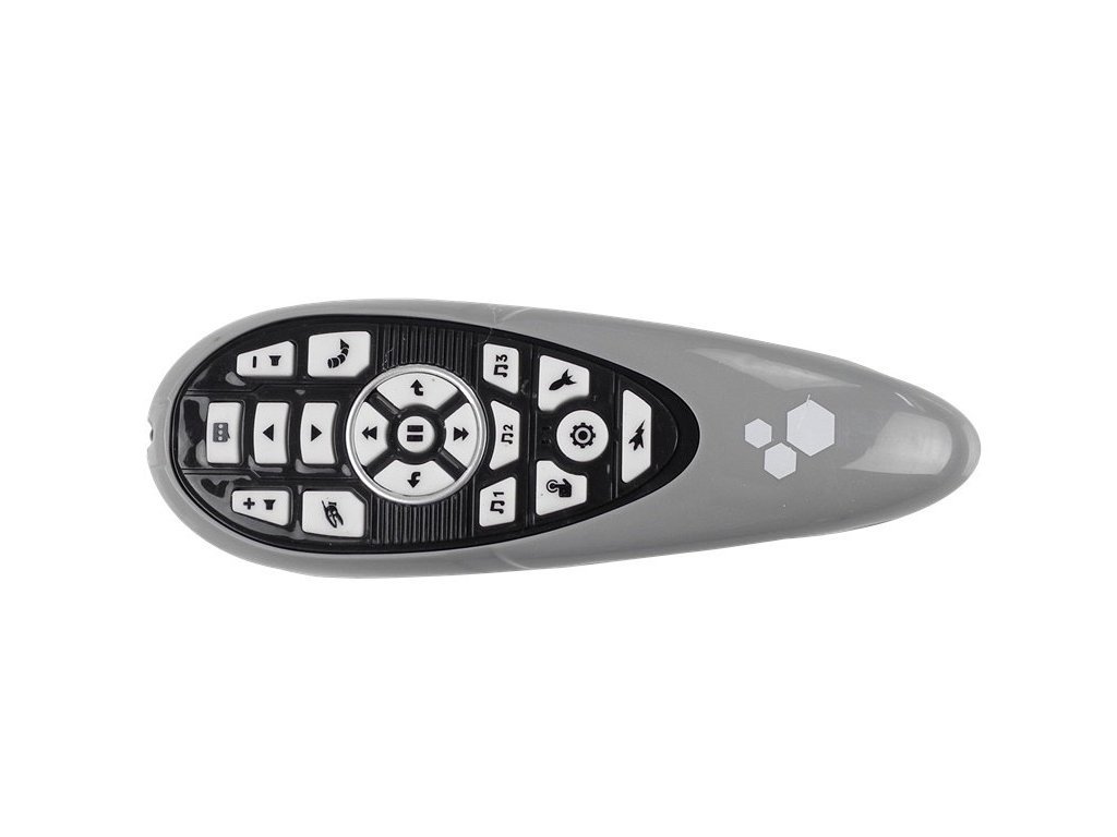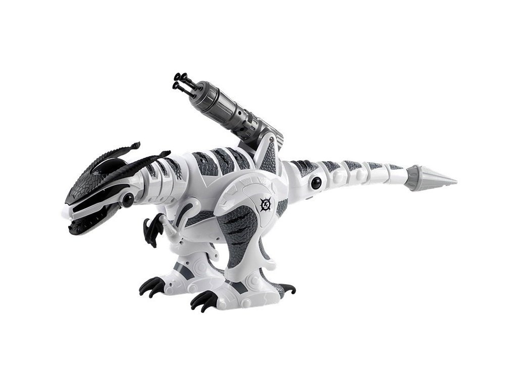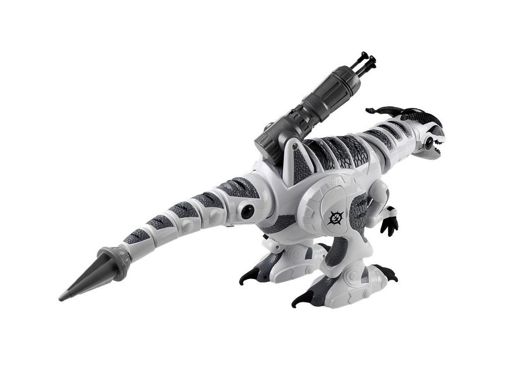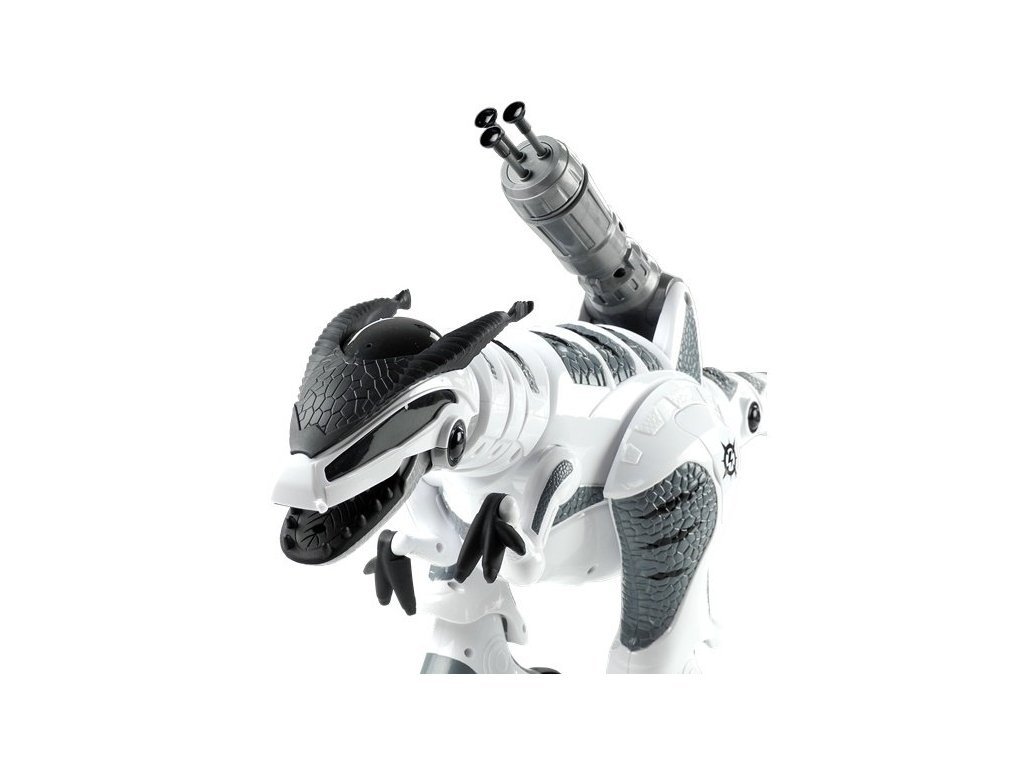 Dinosaurus je ovládán dálkovým ovladačem, který se pohodlně vejde do vaší ruky. Můžete jej použít k tomu, abyste mu dali příkaz, jako je pohyb, vydávání zvuků a střílení z jeho zbraně.