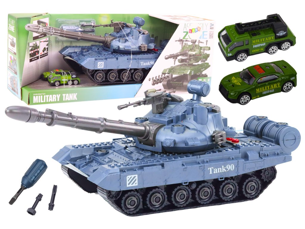 Tank lze rozmontovat pomocí nástrojů přiložených k sadě, což dětem umožní rozvíjet manuální dovednosti a technické zájmy. Sada také obsahuje dvě malá vojenská vozidla, která mohou vjíždět do vnitřku tanku, což přidává ještě více možností hry a scénářů.