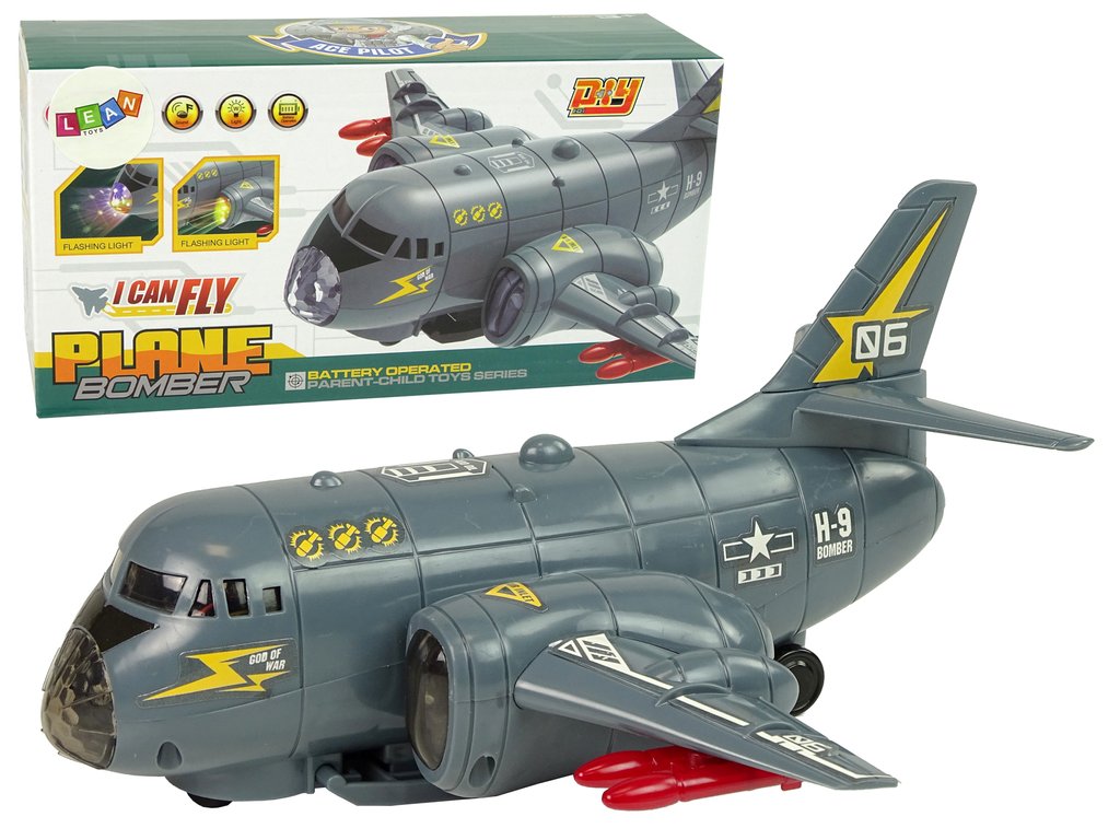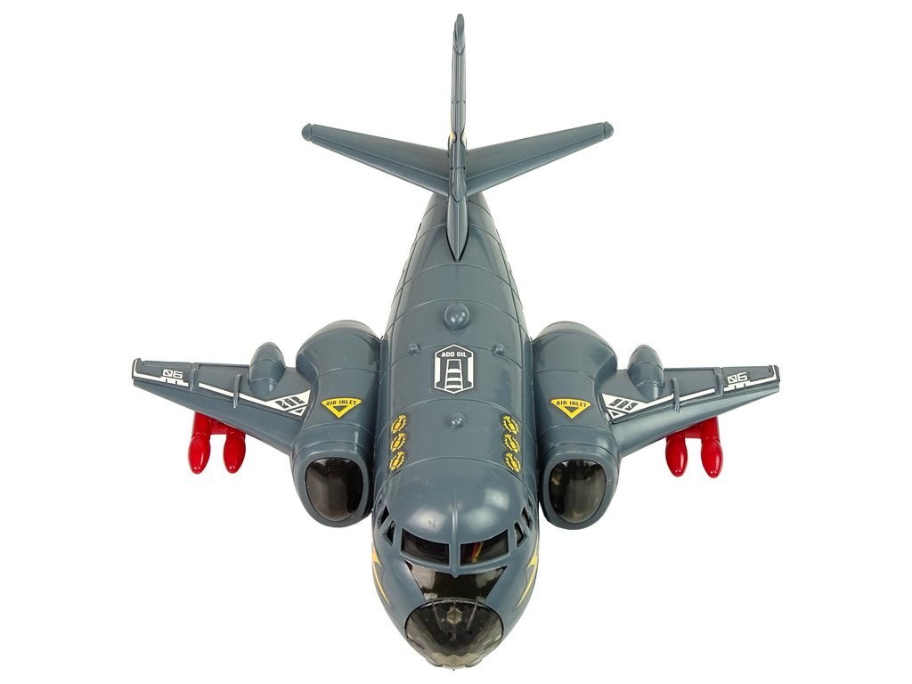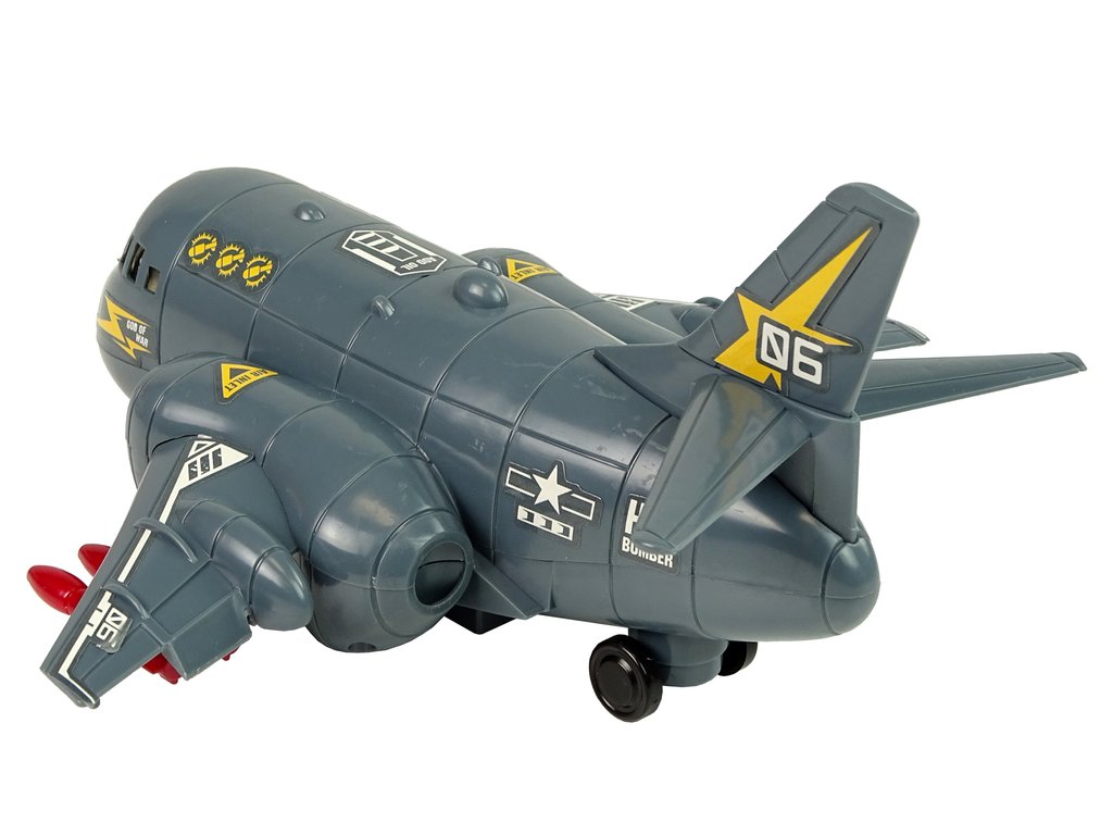 Vojenské letadlo v šedé barvě dokonale odkazuje na vojenské barvy, díky tomu hra vypadá velmi reálně. Na křídlech má červené rakety pro vzdušný boj. Barevné LED diody vycházejí z čela a křídel letadla. Navíc disponuje zvuky vzletu a střelby. Pod vrtulníkem jsou namontována kola, díky kterým se letadlo otáčí.