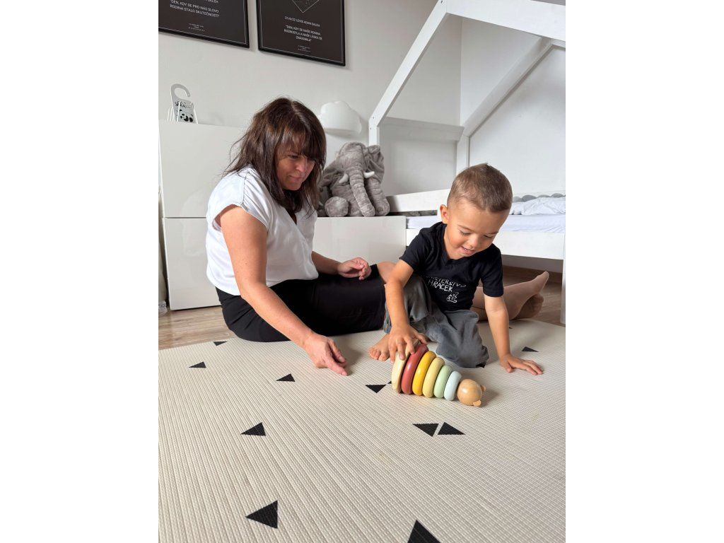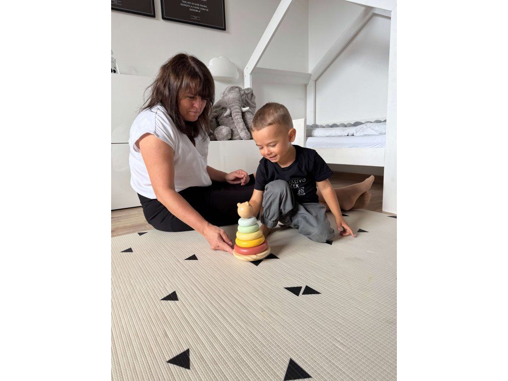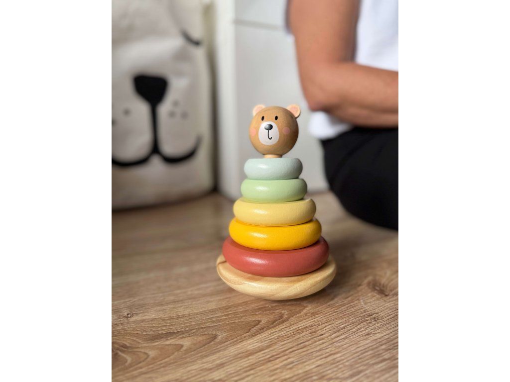 Tato Dřevěná skládací pyramida - Medvěd je ideálním pomocníkem pro stimulaci motorického vývoje vašeho dítěte, poskytuje zábavu a vzdělávání v každém kroku jeho růstu.