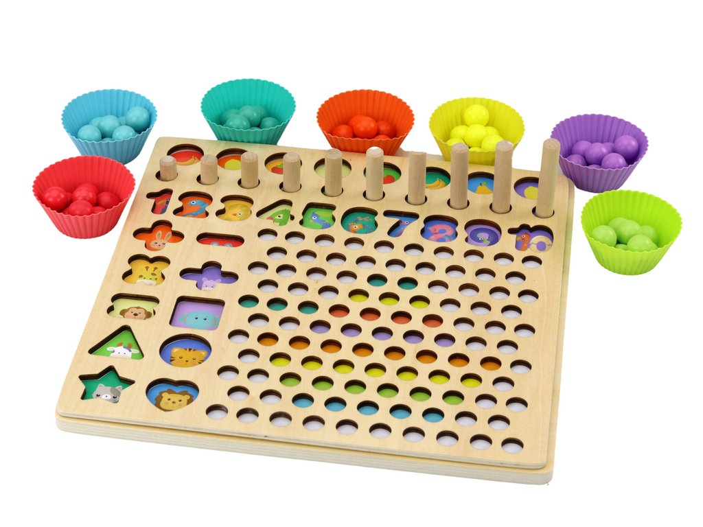 Hrou s chytáním rybiček se dítě učí přizpůsobování detailů a zároveň si zdokonaluje koordinaci oko-ruka. Při umísťování korálků nebo kroužků na tyčky se dítě učí hodnotu čísel a počítá do 10, což může být také chápáno jako forma počítadla. Navíc, skládání prostorových tvarů rozvíjí dovednosti vnímaní a prostorového myšlení.