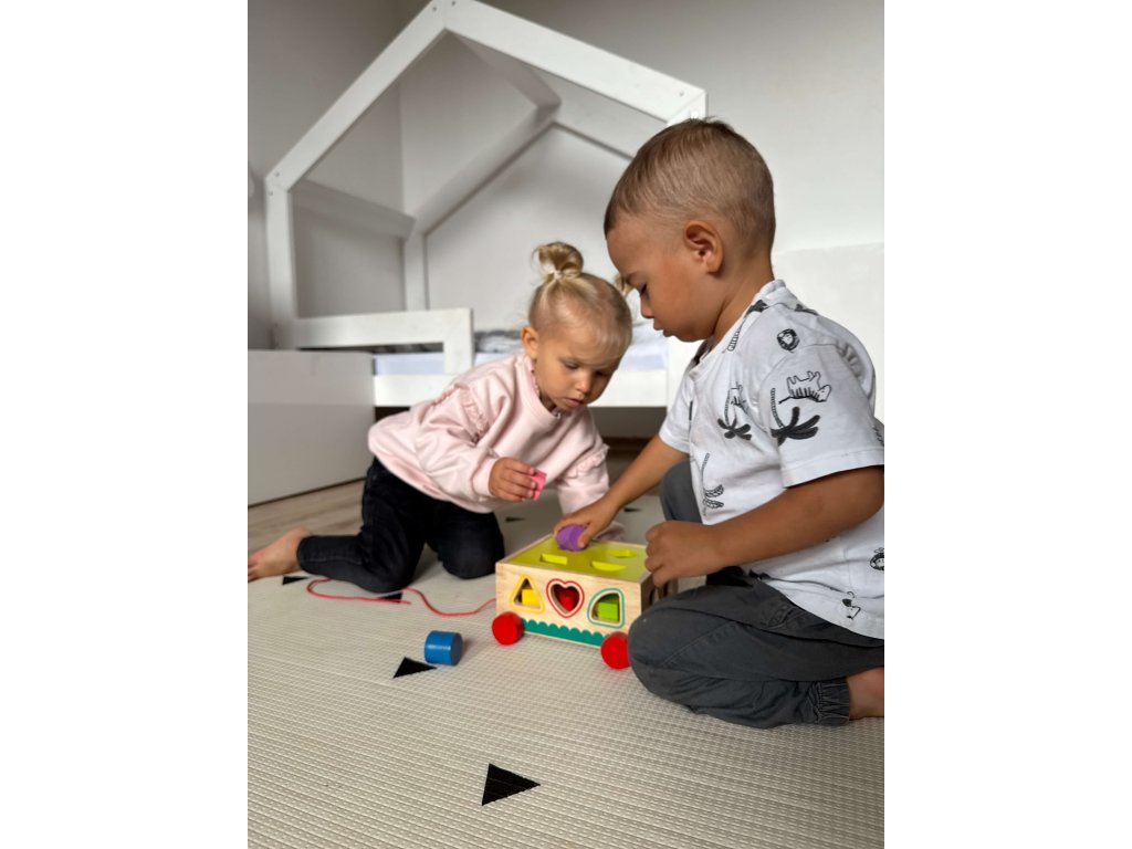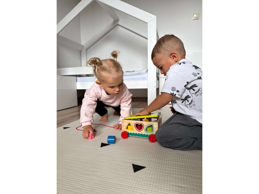 Představujeme Dřevěnou tahací vkládačku s tvary, ideální pro děti od 18 měsíců. Tato interaktivní hračka je navržena pro podporu jemné motoriky, koordinace ruka-oko a rozpoznávání tvarů. Děti mohou umisťovat různé barevné tvary do odpovídajících otvorů a tahat vkládačku pomocí provázku. Vyrobena z bezpečných a ekologických materiálů, tato hračka je šetrná k dětské pokožce a odolná.
