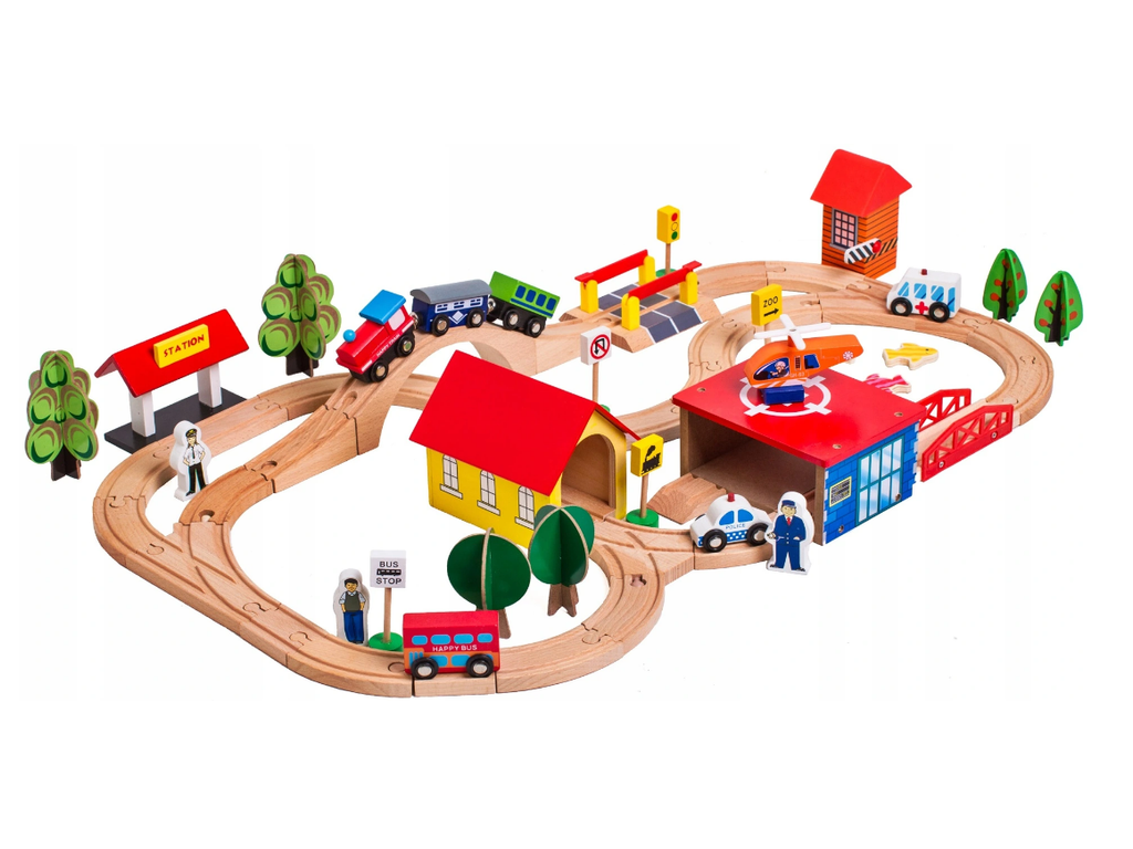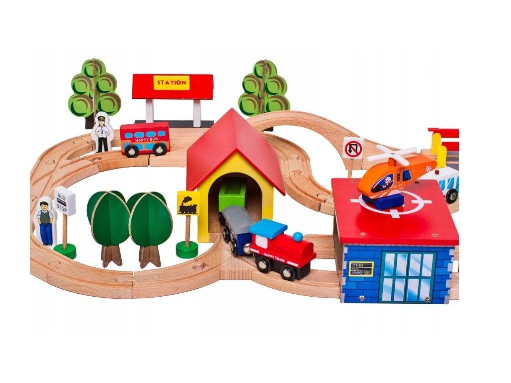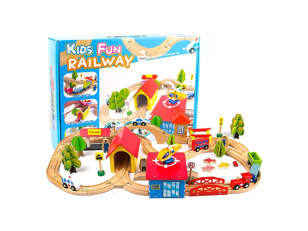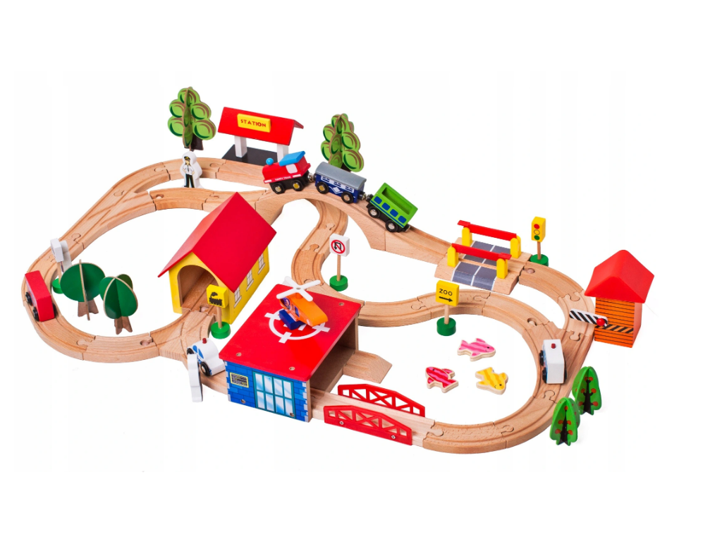 Dřevěná vláčkodráha s doplňky