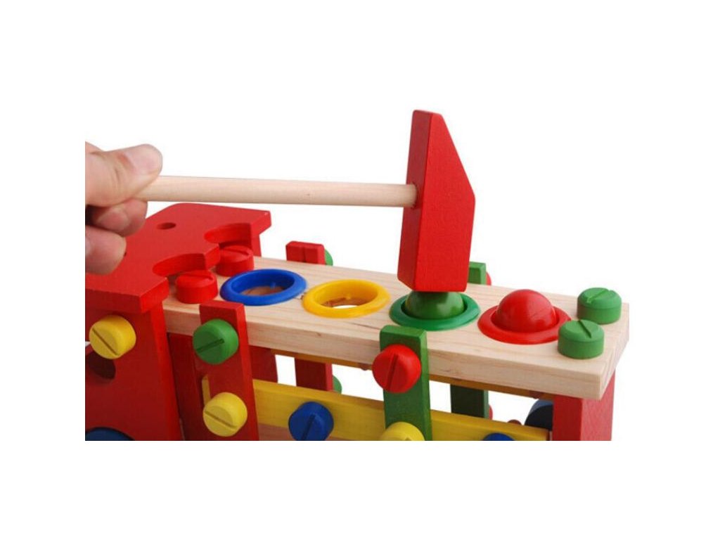Dřevěné autíčko s nářadím je skvělá hračka pro nejmladší automechaniky, která rozvíjejí motoriku dítěte a vizuální koordinaci. Každý šroub lze odšroubovat pomocí přiloženého šroubováku, takže dítě může hračku rozebrat na části. Autíčko je vyrobeno z velmi kvalitního barevného dřeva, je pěkně zabalené a hodí se jako dárek.