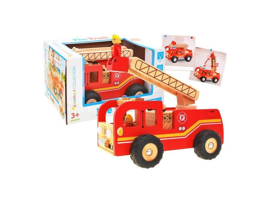 Každý malý hasič musí mít kvalitní dřevěné hasičské auto. Hasičský vůz je vybaven žebříkem s košem a požární hadicí.