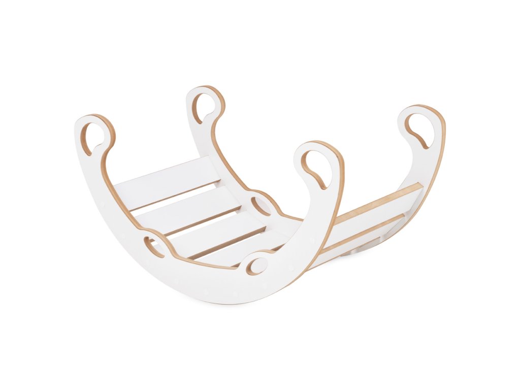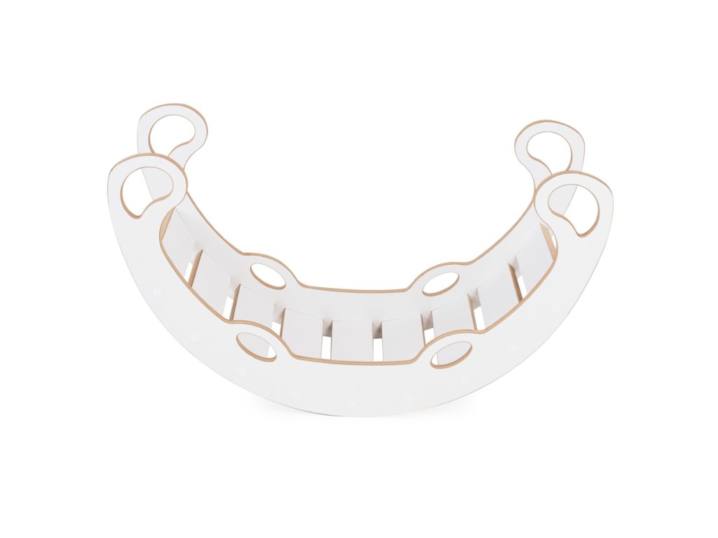 Houpadlo je vyrobeno z kvalitní MDF desky — materiálu, který je odolný, hladký a bezpečný pro děti. Všechny hrany jsou pečlivě zaoblené a obroušené, a součástí je pohodlný měkký polštář, díky kterému je každé houpání skutečným potěšením. Stačí houpadlo otočit naruby a promění se v pevný žebřík, ideální pro malé objevitele a lezce. Takové využití podporuje dítě v pohybové aktivitě a samostatné hře.