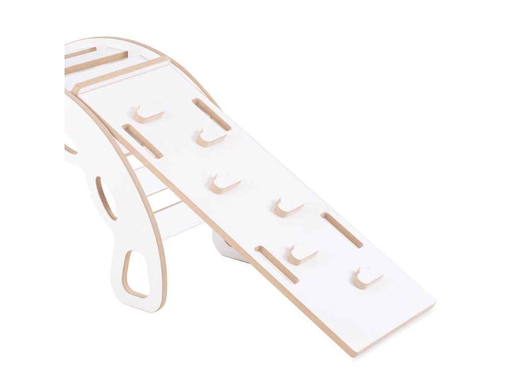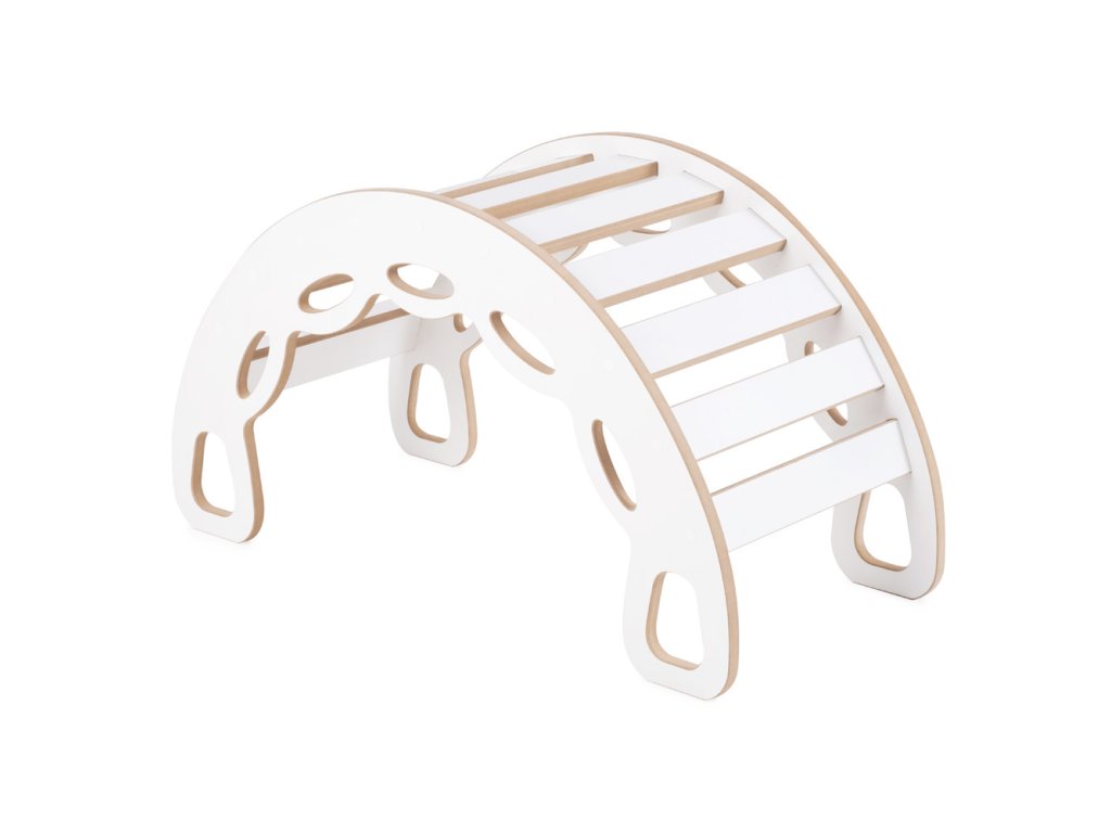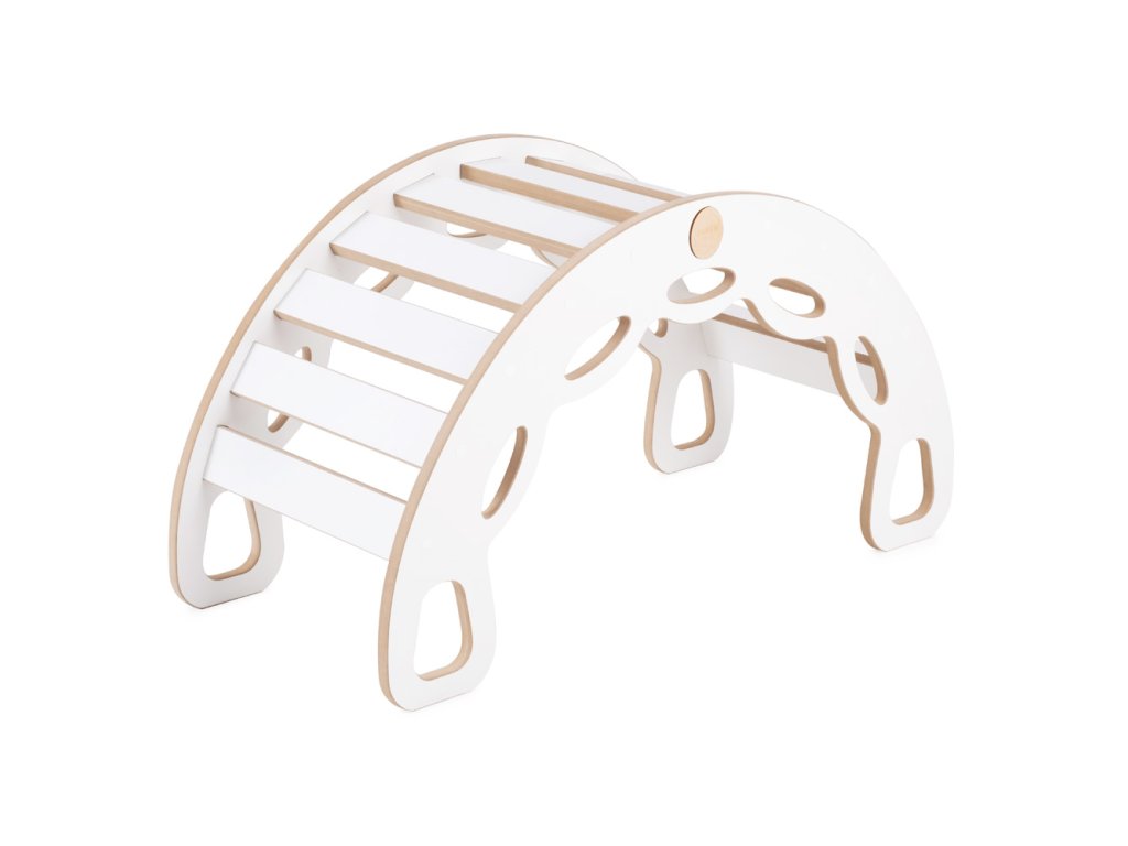 Dřevěné houpátko Mini 4v1 s lezeckou stěnou, skluzavkou a polštářem