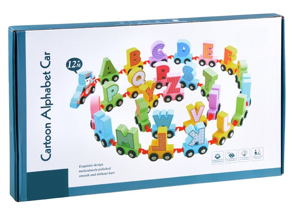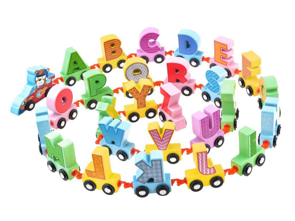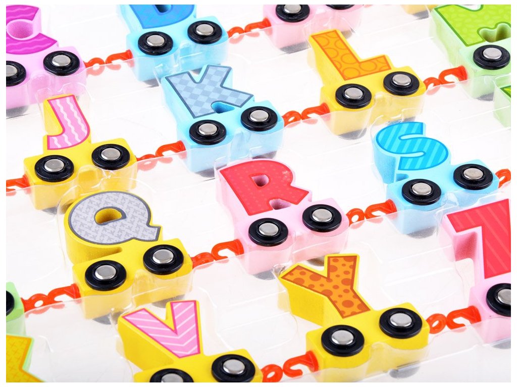 Dřevěné vláčky s abecedou jsou skvělou pomůckou pro děti, které začínají dobrodružství s naukou. Je všeobecně známo, že hrou se dítě naučí nejrychleji a nejvíce. Sada je celá vyrobena ze dřeva, ve skvělých barvách a grafice, povzbudí každé dítě ke hře. Dřevěné vagóny jsou na sebe napojeny a můžete je libovolně odepnout nebo jakkoliv spojovat.