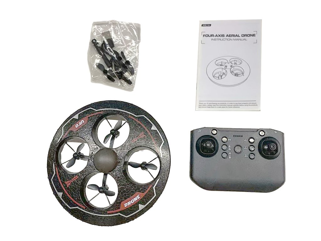 Kruhový design připomínající UFO, čtyři vrtule ukryté uvnitř ochranného rámu – ideální pro bezpečné létání doma i venku. Ovládání je řešeno pomocí dálkového ovladače, dron je stabilní, snadno ovladatelný a díky LED světýlkům efektně svítí při letu. Skvělý pro začátečníky, děti i jako zábavná RC hračka na odpolední hraní.