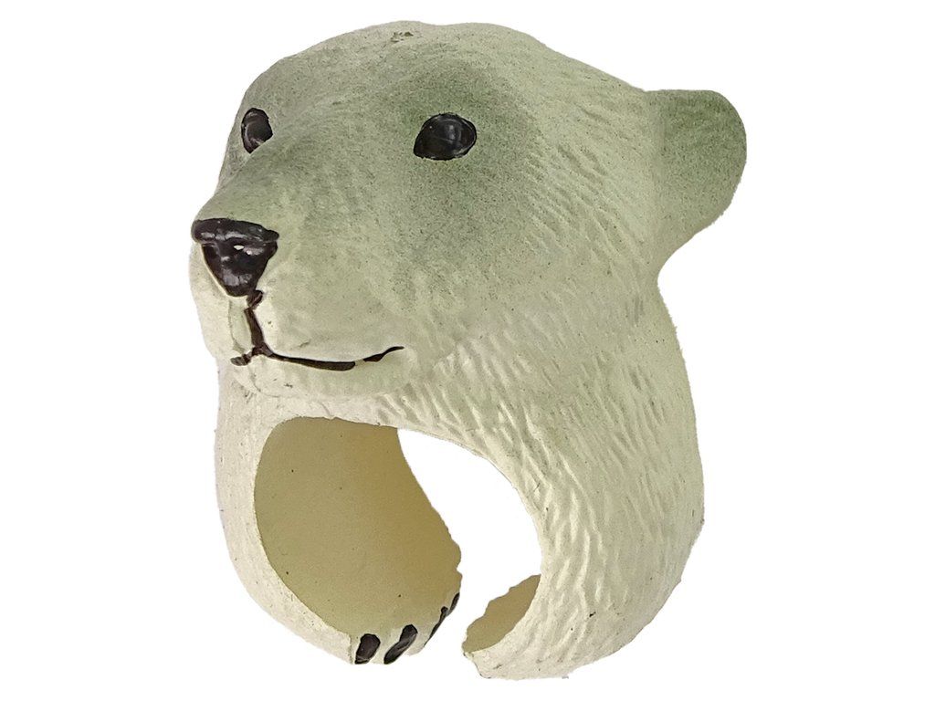 Představujeme prsten na ruku s motivem bílého medvěda. Tento poutavý prsten je doplňkem každého tradičního oblečení nebo pomůckou pro předvádění malých her.