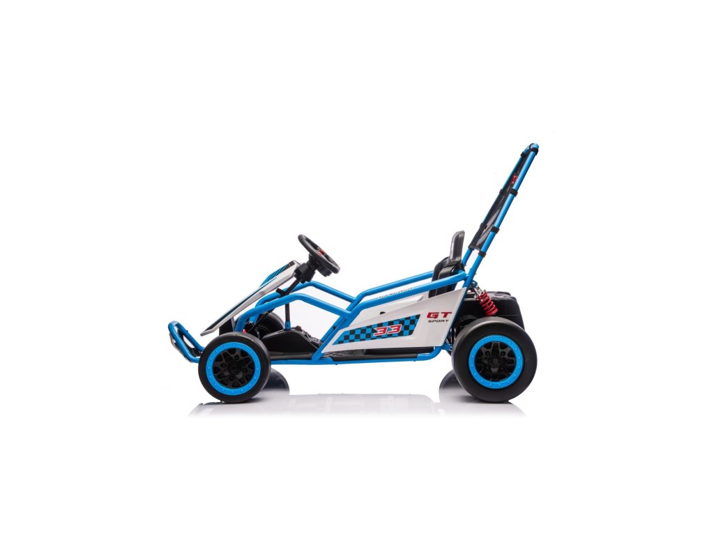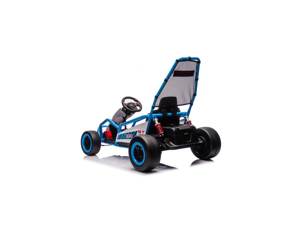 Motokára je vybavena předními EVA koly pro hladkou jízdu, zatímco zadní plastová kola umožňují snadné driftování. Samozřejmostí jsou nastavitelné zadní tlumiče, plynulý rozjezd a bezpečnostní pásy pro větší jistotu během jízdy. Vše doplňuje moderní audio panel s Bluetooth a MP3 přehrávačem.
