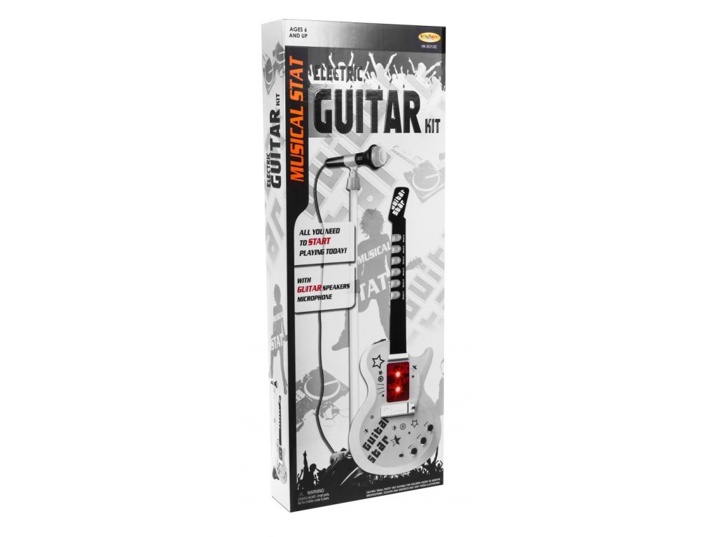 - Kytara s nastavitelným popruhem (napájený třemi 1,5V AA bateriemi - není součástí balení)