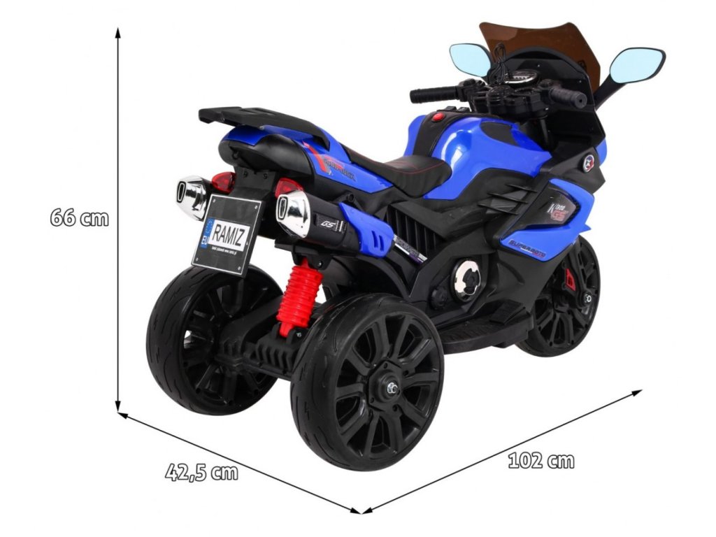 Elektrická motorka pro malé závodníky je vyrobena z kvalitního tvrdého plastu. Dětská elektrická motorka pomáhá dětem v rozvoji řidičských schopností a rovnováhy. Motorka bude to výborný doplněk na procházky s rodinou nebo na trávení volného času na zahradě. Elektrická motorka je vybavená předními LED světly. Motorka má rychlost 3 km/h. Dětská elektrická motorka dokáže jezdit ve dvou směrech, a to dopředu a dozadu. Dětská elektrická motorka byla navržena pro všechny děti starší 3 let.