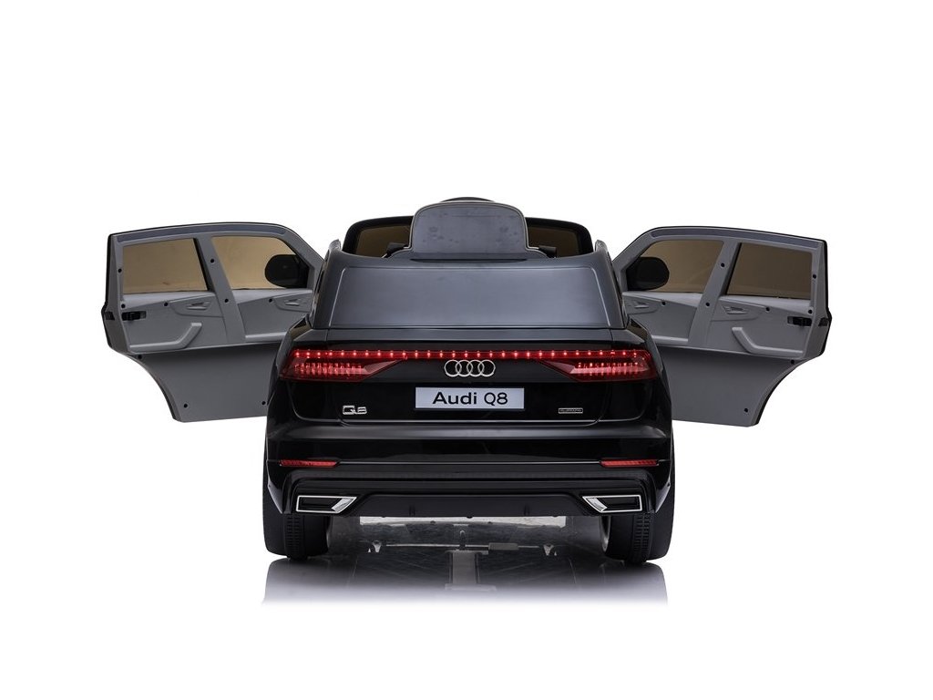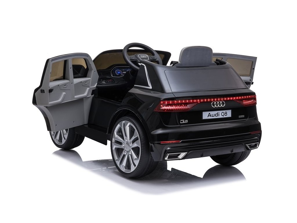 Dětské elektrické autíčko Audi Q8 s inovativním dálkovým ovládáním určeným pro rodiče. Elektrické autíčko má pohodlnou sedačku a pro bezpečnost dítěte je na sedačce umístěn bezpečnostní pas. Autíčko je vybaveno palubní deskou, volantem, svítícími předními světly a panelem audio. Vozidlo lze ovládat dvěma způsoby, bud' pomocí dálkového ovladače, který je určený pro rodiče, kdy rodič sám volí směr a rychlost jízdy nebo dítě může řídit autíčko zcela samostatně. Kola elektrického autíčka jsou měkká pěnová a umožňují tak plynulou a příjemnou jízdu. Audi Q8 pro každého milovníka velkých autíček!