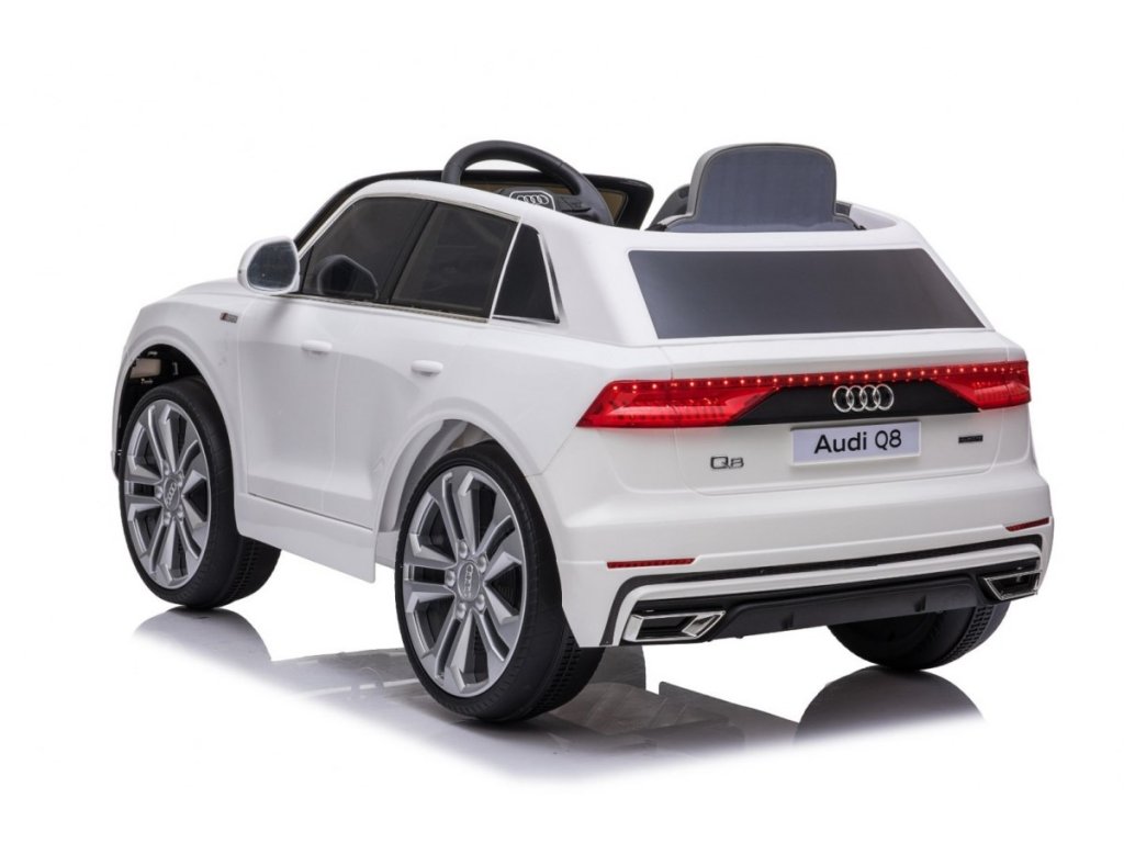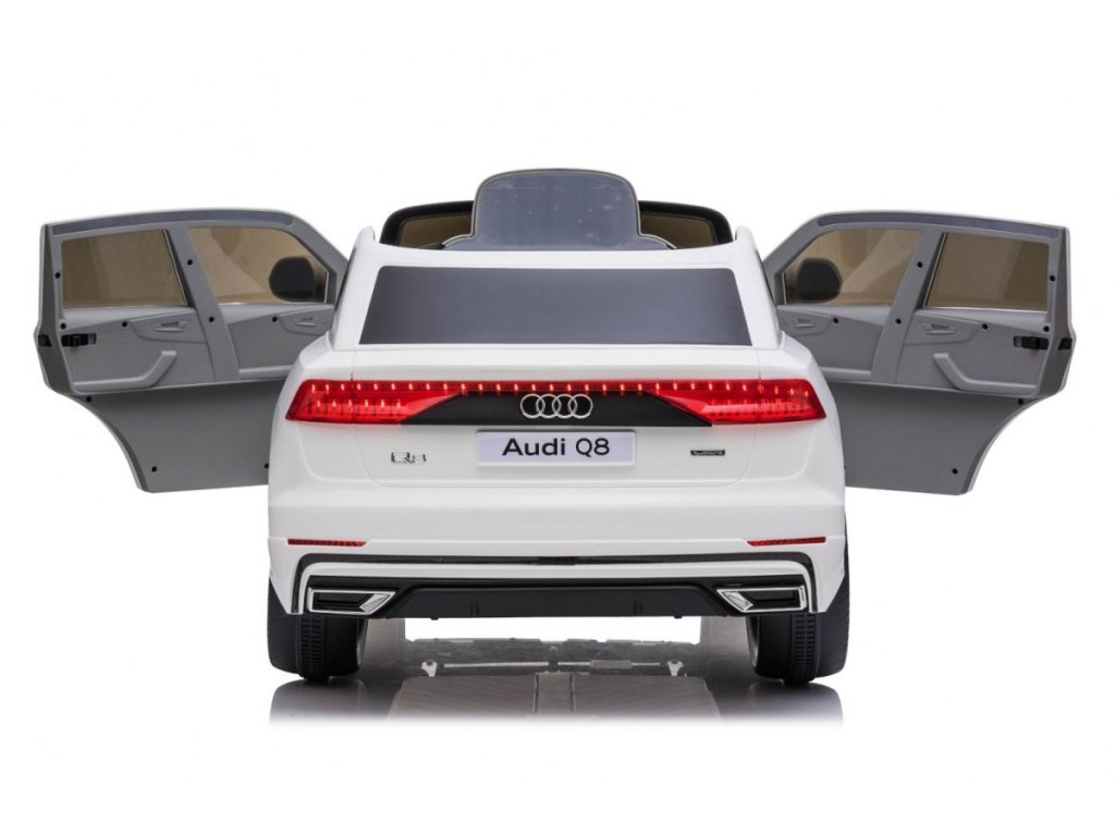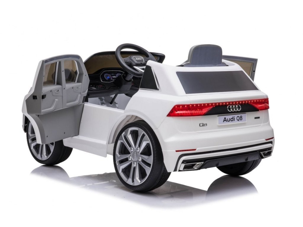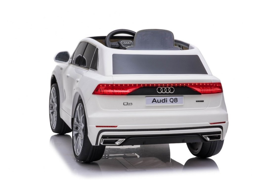 Dětské elektrické autíčko Audi Q8 si Vaše dítě zamiluje. Toto krásné elektrické autíčko se rozhodně má čím pochlubit. Kromě krásného designu má také bohatou výbavu a užitečné funkce. Za zmínku jistě stojí funkce volného startu a bezpečnostní tlačítko STOP. Ve výbavě autíčko zase nabízí kola EVA, které nejsou hlučné a zpříjemňují řízení. K tomu zvládají různé typy povrchů. Dále pohodlné sedadlo z eko kůže, LED osvětlení, otevíratelné dveře, tlumiče a hudební panel. Vozidlo lze také ovládat na dálku díky ovladače, a proto máte neustálou kontrolu nad dítětem. Autíčko je vhodné pro děti od 3 let.