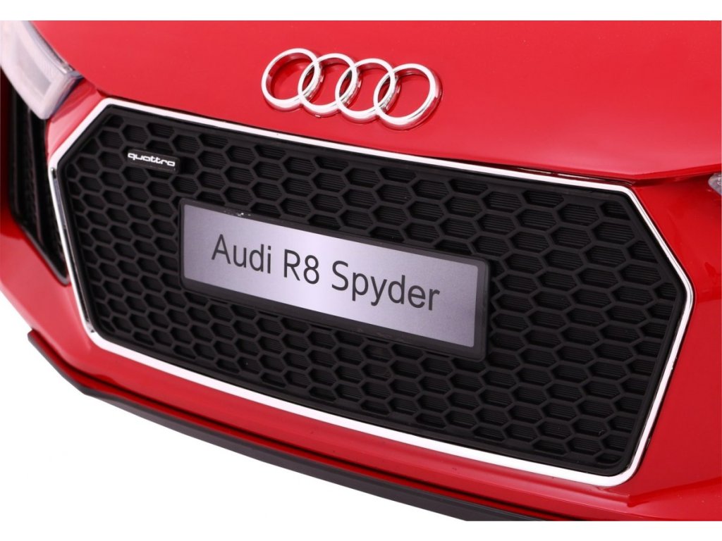 Dětské elektrické autíčko Audi R8 Spyder je kvalitně zpracované, má měkké EVA pěnová kola a LED světla. Elektrické auto Audi R8 Spyder dokáže jezdit směrem dopředu i dozadu. Auto je možné ovládat i přes 2,4GHz dálkové ovládání. Pro bezpečnost dítěte je na sedačce nastavitelný bezpečnostní pás. Pro malé hudební nadšence je k dispozici USB, SD vstup.
