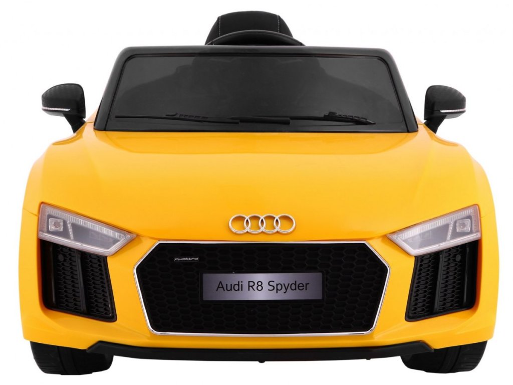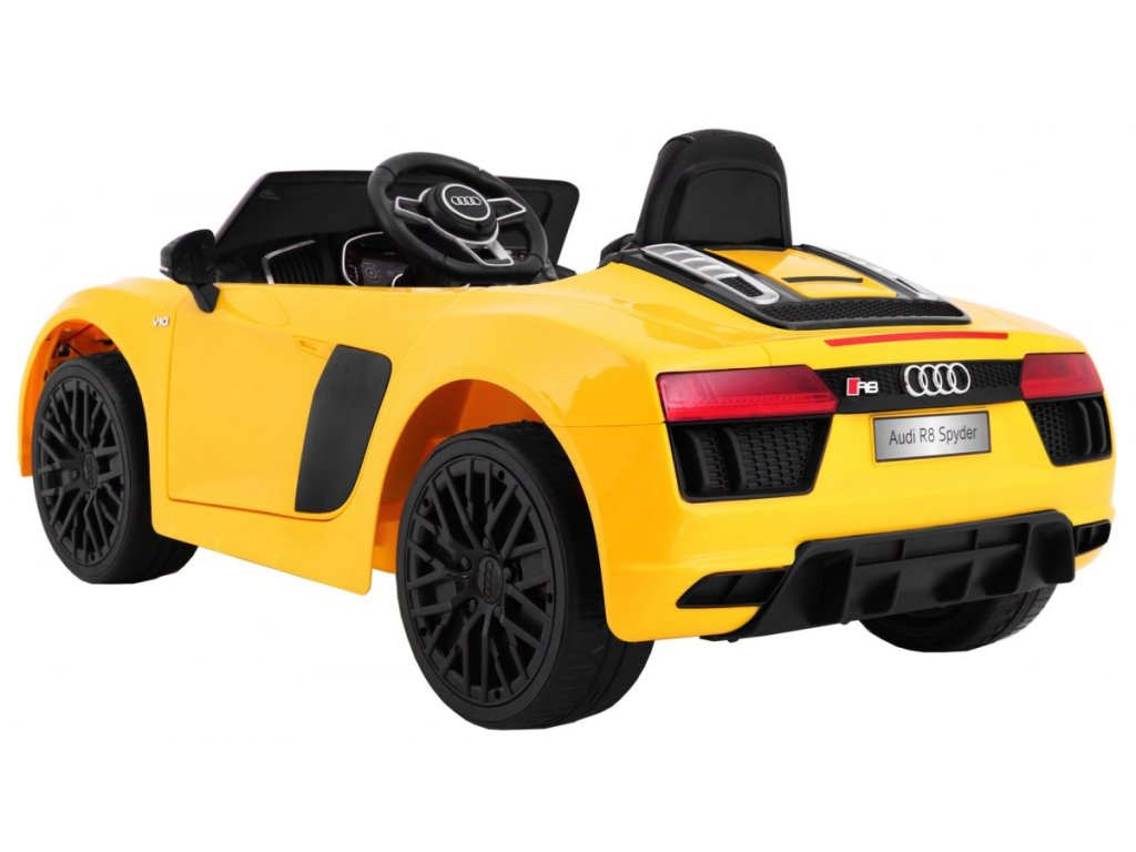 Dětské elektrické autíčko Audi R8 Spyder je kvalitně zpracované, má měkké EVA pěnová kola a LED světla. Elektrické auto Audi R8 Spyder dokáže jezdit směrem dopředu i dozadu. Auto je možné ovládat i přes 2,4GHz dálkové ovládání. Pro bezpečnost dítěte je na sedačce nastavitelný bezpečnostní pás. Pro malé hudební nadšence je k dispozici USB, SD vstup.