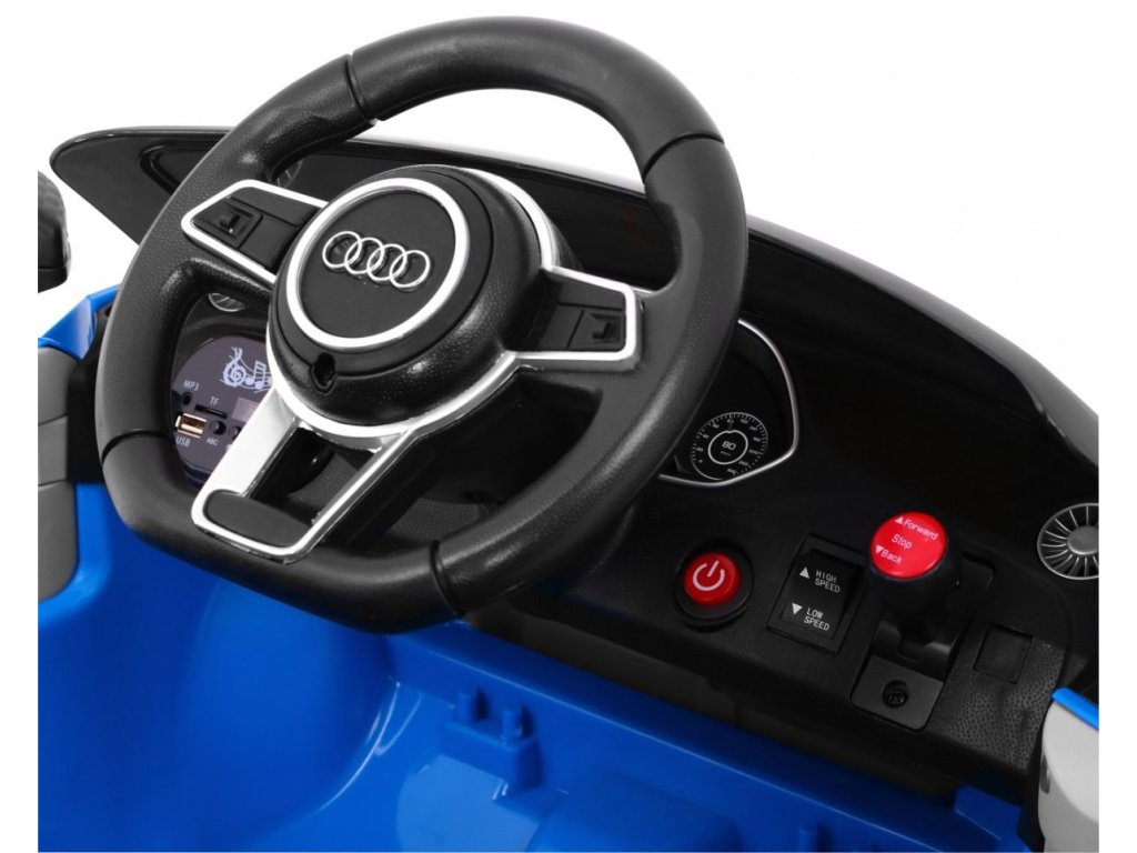 Autíčko Audi TT RS, které vypadá absolutně realisticky s originálními detaily. Auto je kvalitně zpracované, má měkké EVA polymerové pneumatiky, díky kterým může Vaše dítě vyrazit do jakéhokoli terénu, a svítící LED světla. Pohodlná kožená sedačka, pro bezpečnost dítěte je na sedačce nastavitelný bezpečnostní pás. Výhodou jsou otevíratelné dveře. Pro malé hudební nadšence je k dispozici vstup pro MP3 a USB.