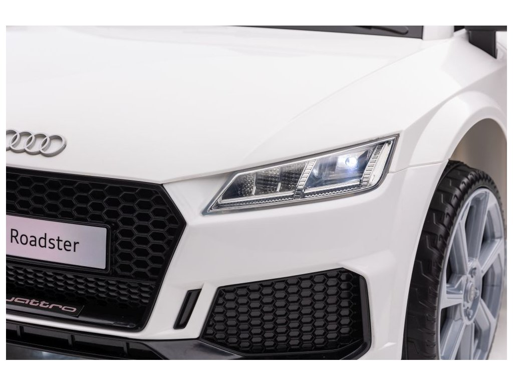 Elektrické autíčko Audi TT RS Roadster má dva motory o výkonu 45W. Autíčko je vybavené baterií s kapacitou 12V 7Ah a má nosnost 30 kg. Sedadlo je potaženo ekologickou kůži a má bezpečnostní pás. Výhodou autíčka jsou funkční přední a zadní LED světla.