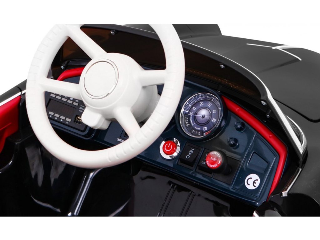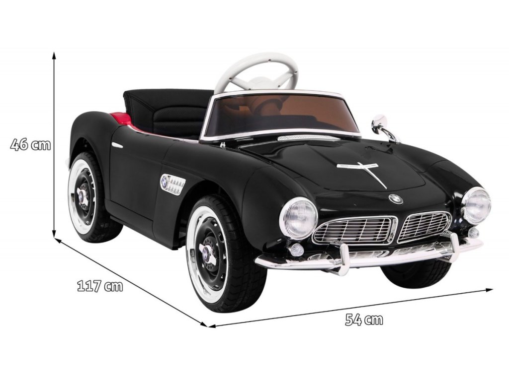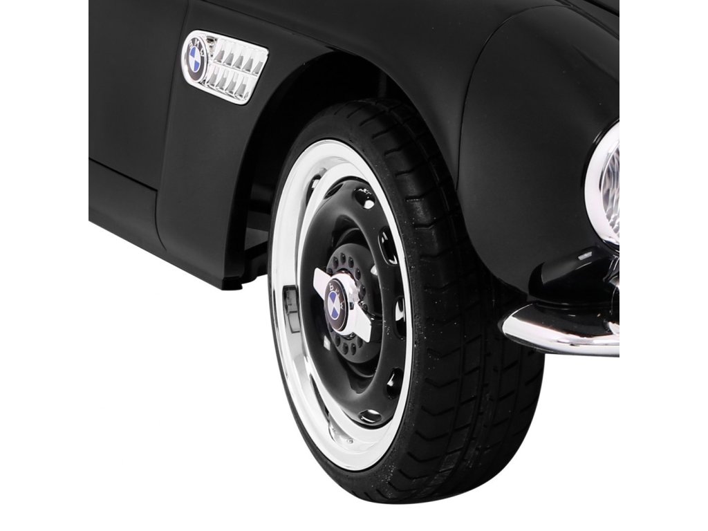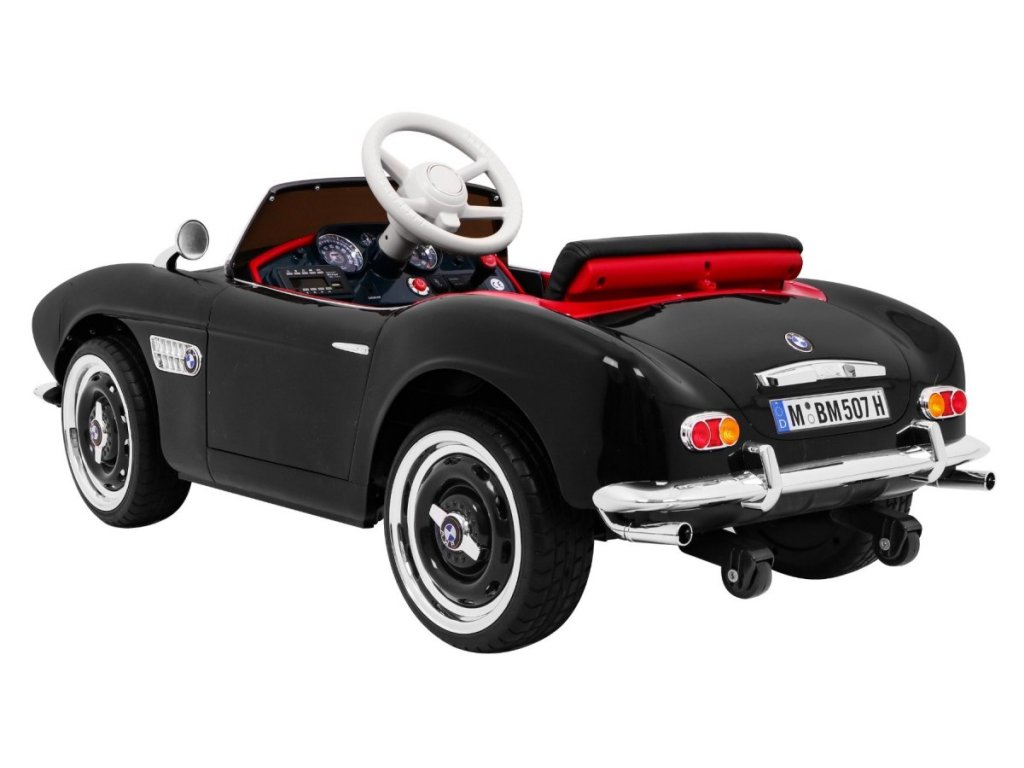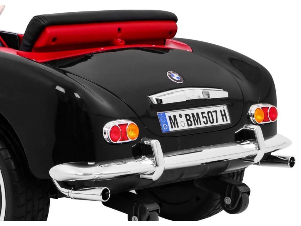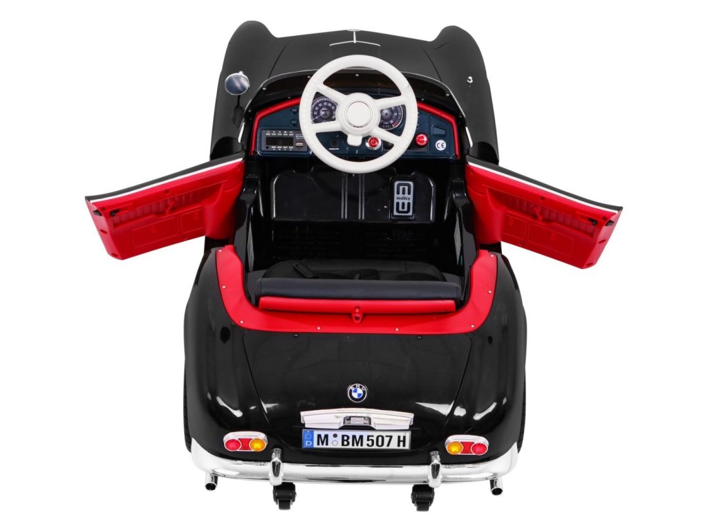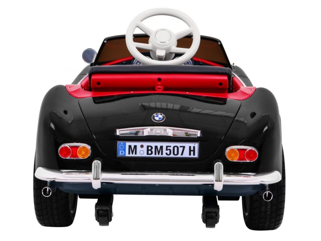 Elektrické autíčko BMW 507 Retro v černé barvě. Elektrické autíčko je vybaveno svítícími předními a zadními světly. Obsahuje přípojku pro MP3, SD kartu a USB. Pro bezpečnost dítěte je na sedačce umístěn bezpečnostní pas. Chcete-li se vydat na projížďku, stačí se jen pohodlně usadit v elektrickém autíčku, a pak zmáčknout tlačítko START. V sadě se nachází i dálkové ovládání pro rodiče, které využijete, když dítě ještě nezvládá řízení autíčka samo.