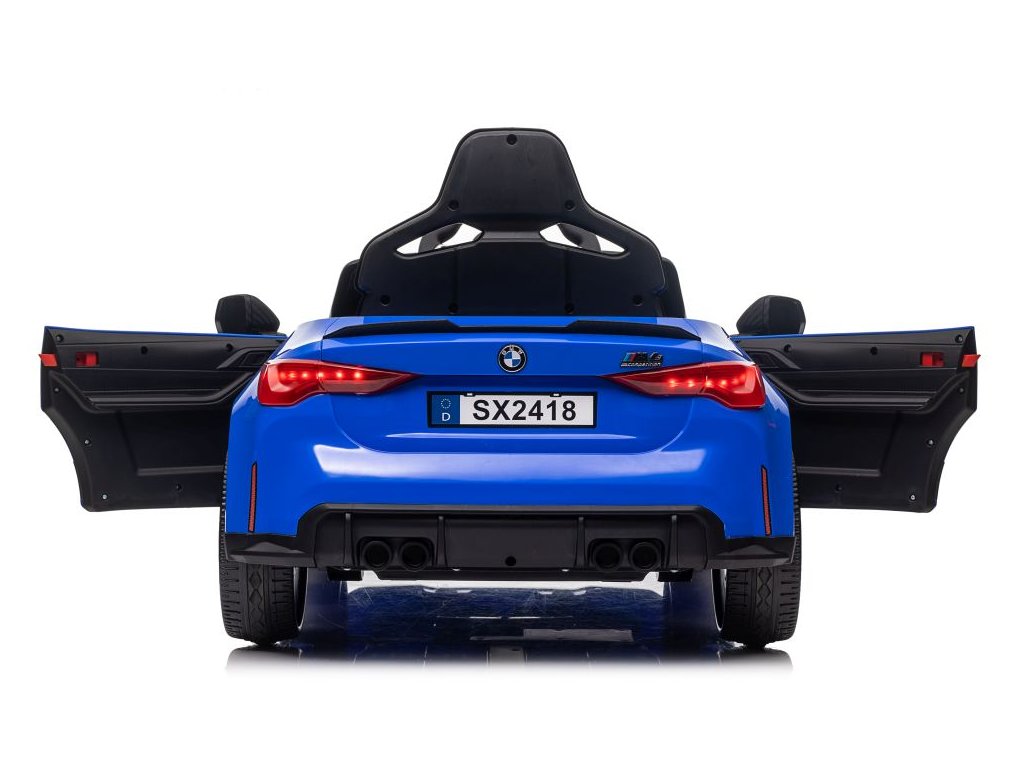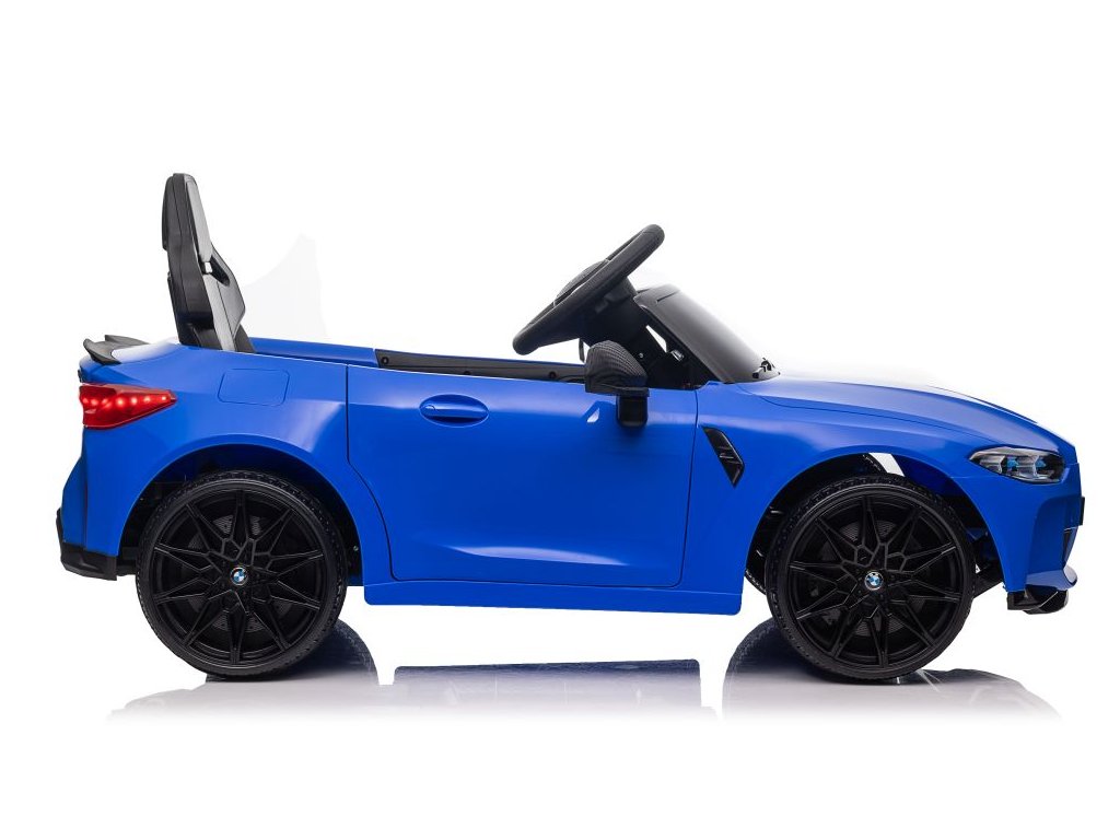 Dětské licencované autíčko BMW M4 přijíždí na měkkých pěnových EVA kolech, která jsou tichá a přizpůsobí se různým typům terénu. Dítě se posadí do pohodlně tvarované sedačky z ekologické kůže a o bezpečnost se postarají bezpečnostní pásy.
