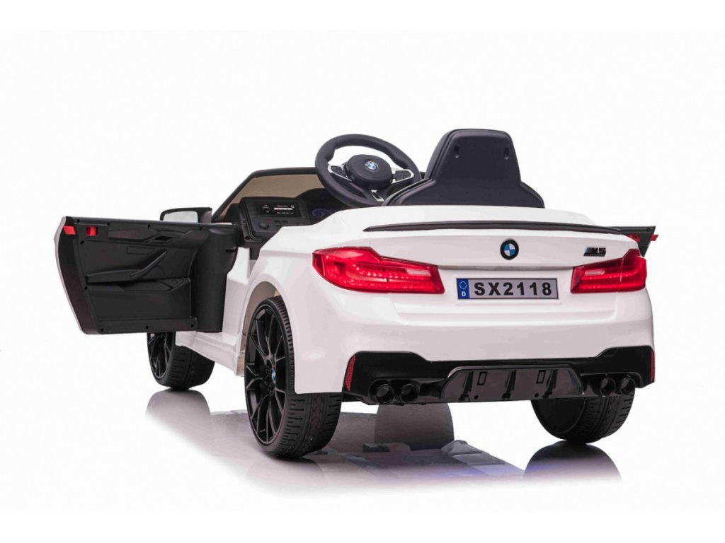Elektrické autíčko je licencované společností BMW. Elektrické autíčko BMW M5 má dva motory s 25 000 otáčkami za minutu a dvěma bateriemi o kapacitě 12V 7Ah. Autíčko má přední a zadní LED světla. Vozítko má hudební panel, který má MP3, vstup pro USB a předehrané melodie. Na volantu se nachází klakson. Autíčko má funkci driftování.