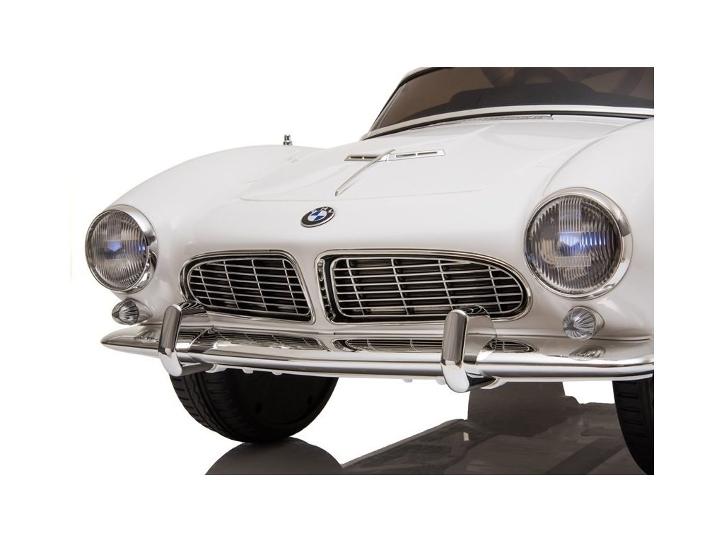 Retro elektrické autíčko BMW s otevíracími dveřmi a dálkovým ovládáním potěší každého malého řidiče. Elektrické autíčko má pohodlnou sedačku a pro bezpečnost dítěte je na sedačce umístěn bezpečnostní pas. Autíčko je vybaveno palubní deskou, volantem, svítícími předními světly a panelem audio.
