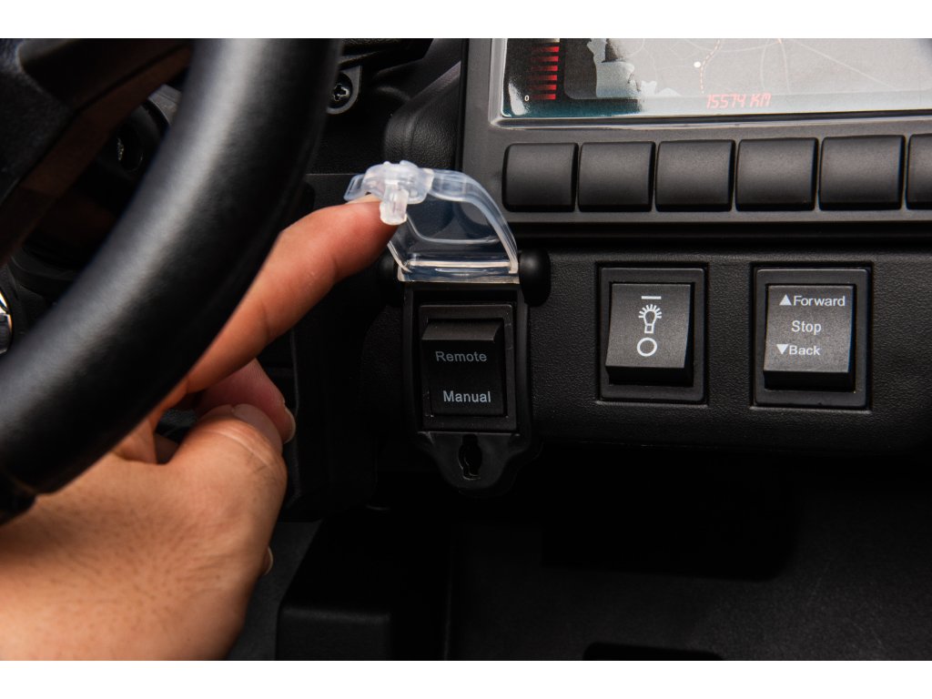 Autíčko můžete ovládat pomocí dálkového ovládání, které pracuje na frekvenci 2,4 GHz. Na dálkovém ovladači jsou tři rychlosti a bezpečnostní tlačítko STOP, které po zmáčknutí okamžitě zastaví autíčko.