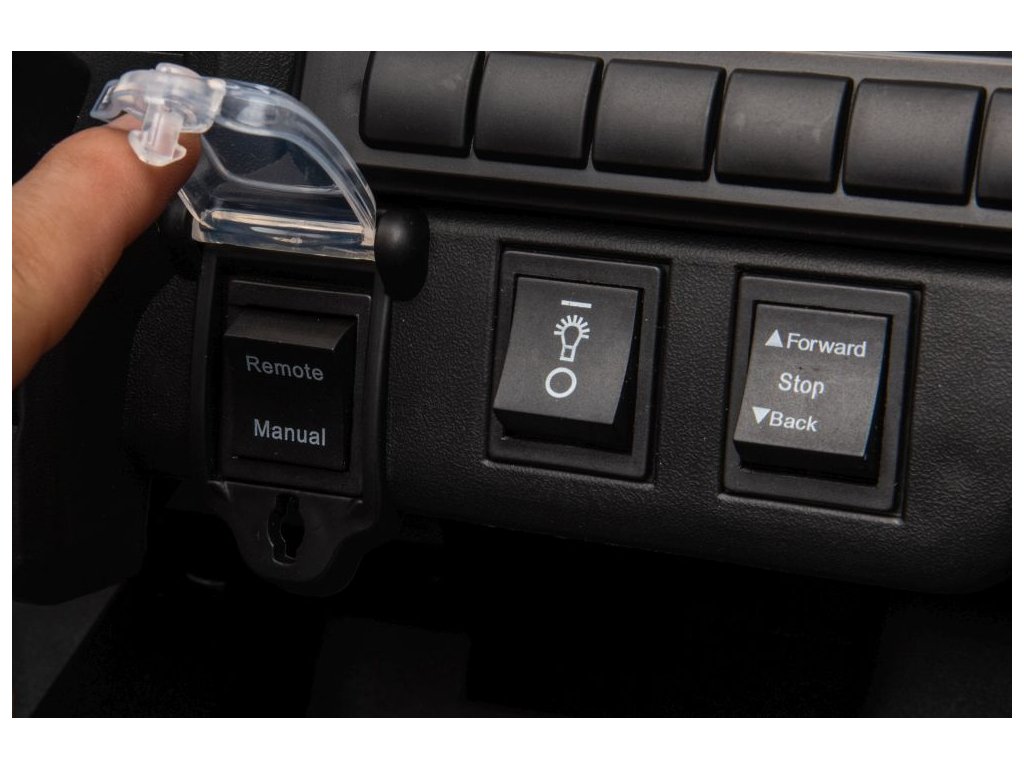 Autíčko můžete ovládat pomocí dálkového ovládání, které pracuje na frekvenci 2,4 GHz. Na dálkovém ovladači jsou tři rychlosti a bezpečnostní tlačítko STOP, které po zmáčknutí okamžitě zastaví autíčko.