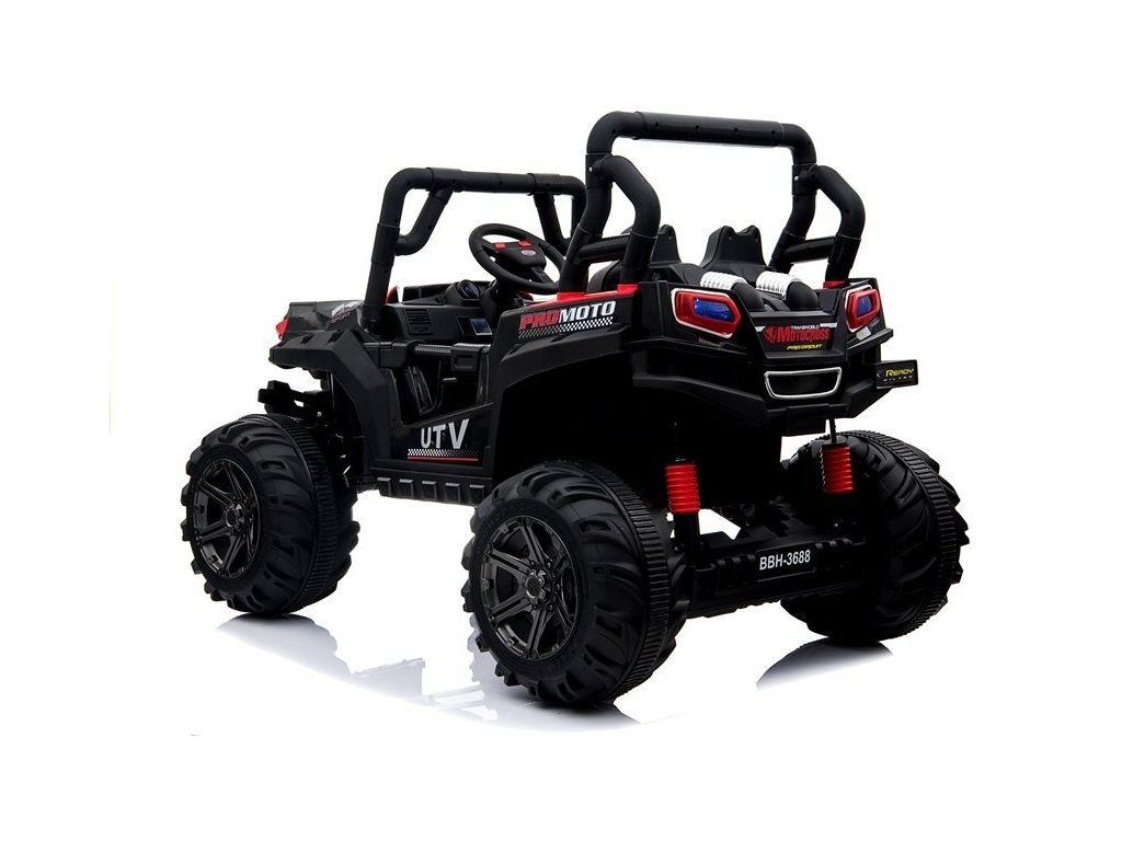 Dětské elektrické autíčko Buggy Star 4x4 s inovativním dálkovým ovládáním určeným pro rodiče. Elektrické autíčko má pohodlnou sedačku z ekokůže a pro bezpečnost dítěte je na sedačce umístěn bezpečnostní pas. Autíčko je vybaveno palubní deskou, volantem s klaksonem, svítícími předními světly a panelem audio se vstupem USB, mikro SD. Vozidlo lze ovládat dvěma způsoby, bud' pomocí dálkového ovladače, který je určený pro rodiče, kdy rodič sám volí směr a rychlost jízdy nebo dítě může řídit autíčko zcela samostatně. Elektrické autíčko Buggy Star má 4 motory o výkonu každý 45W, tudíž má náhon na všechny 4 kola! Kola jsou měkká pěnová a umožňují tak plynulou a příjemnou jízdu. Ideální vozidlo pro každého milovníka velkých autíček!