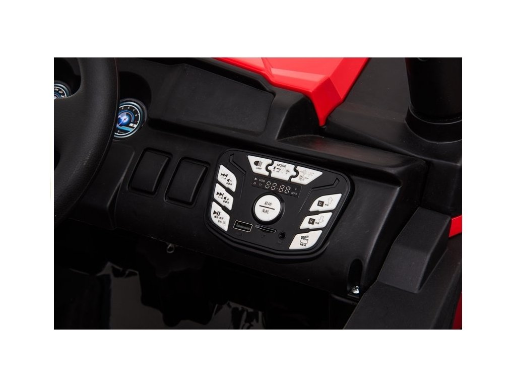 Elektrické autíčko Buggy je vybaveno vstupem USB a MP3, který vám umožní přehrávat písničky vašich oblíbených interpretů. Další výhodou modelu je sedadlo z eko-kůže, motor 4x45W a osvětlená přístrojová deska. Tento model má také panel MP4, který vám umožní přehrávat oblíbené pohádky vašeho dítěte!