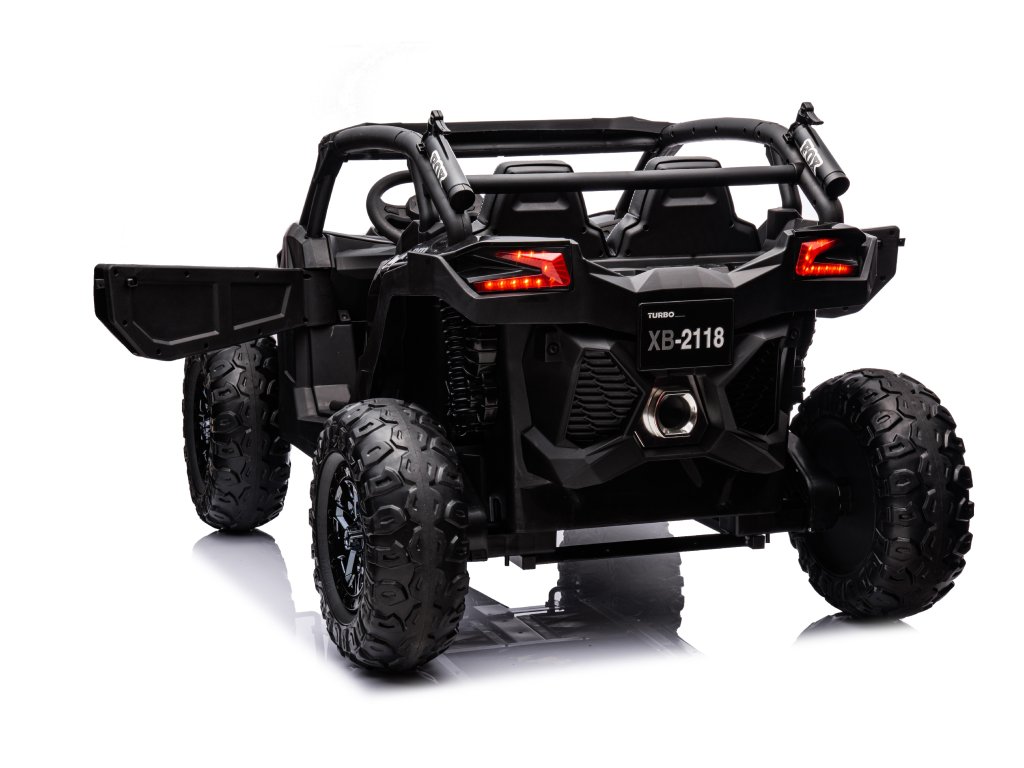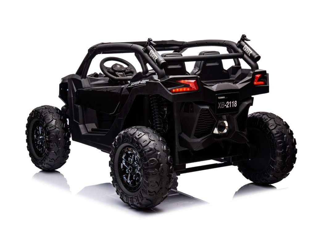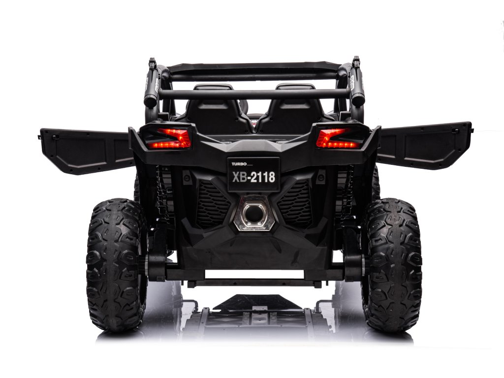 Elektrické autíčko Buggy Turbo se čtyřmi silnými motory o celkovém výkonu 800 W nesmí chybět v žádné dětské garáži. Autíčko je poháněno baterií s kapacitou 24V 7Ah. Maximální zatížení vozítka je 60 kg. Při startování uslyšíte zvuky motoru a během jízdy dítě určitě zaujme hudební panel s rádiem, MP3, předehranými melodiemi, a navíc se jde k hudebnímu panelu připojit pomocí bluetooth.
