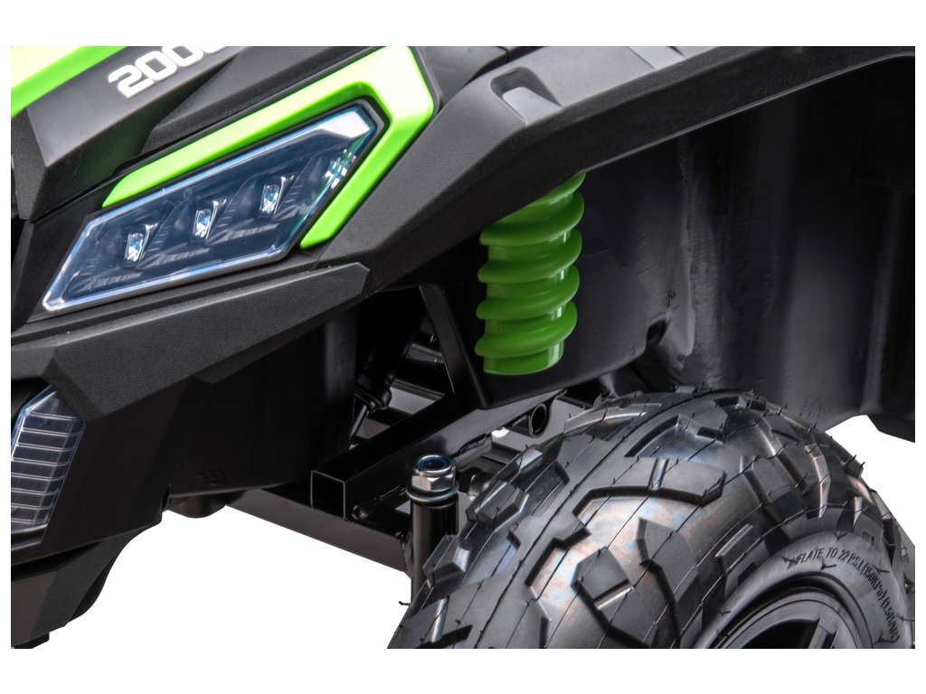 Dětské elektrické autíčko Buggy Strong 24V se vyjímá svými mohutnými nafukovacími koly a nosností do 100 kg. Díky vysoké nosnosti a velikosti autíčka se do něj pohodlně usadí dvě děti. Sedačka je vyrobena z ekologické kůže.