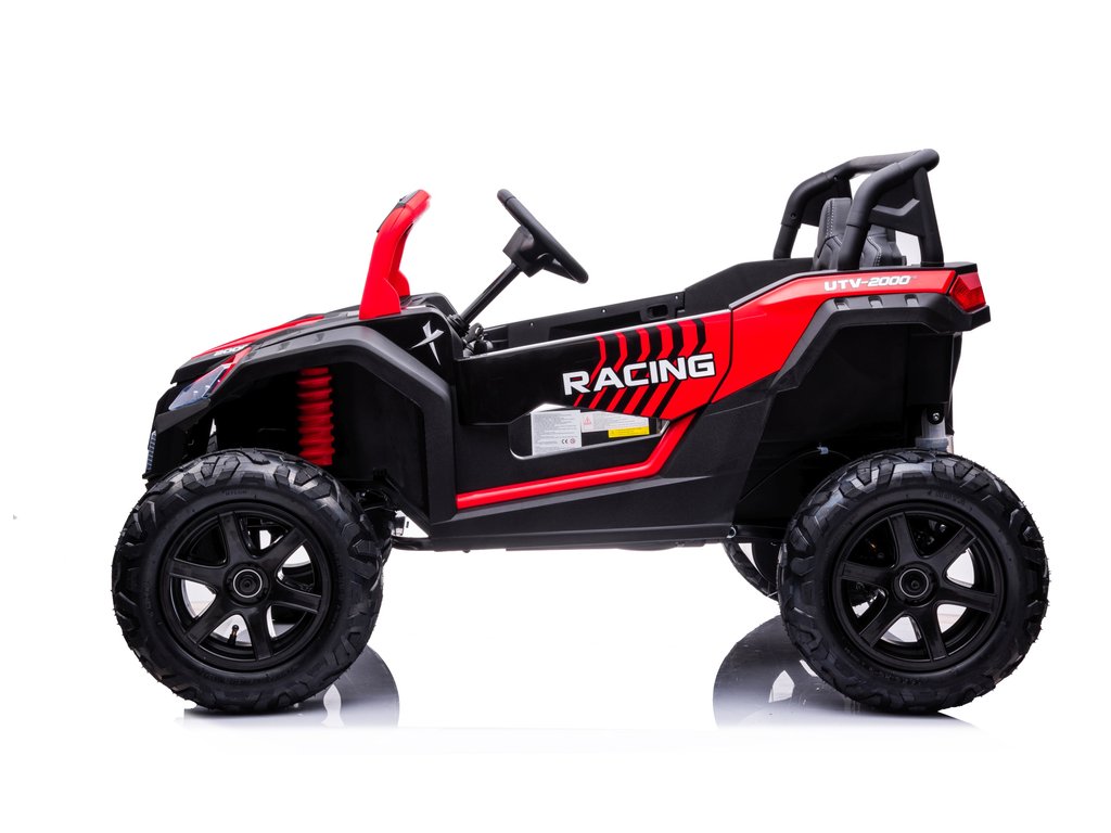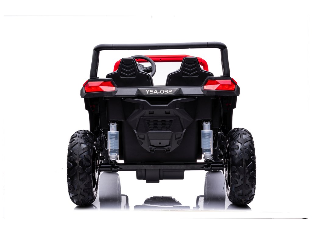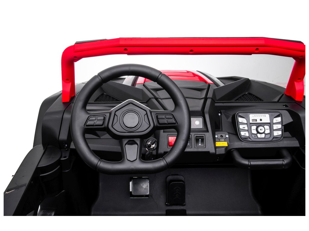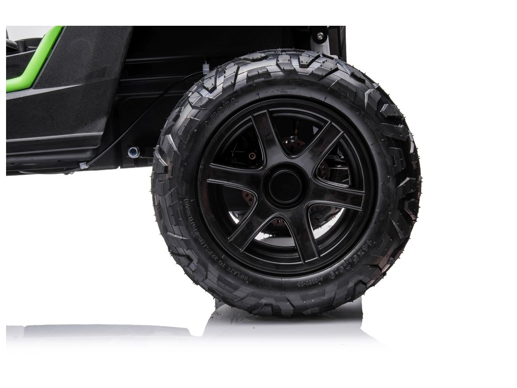 Dětské elektrické autíčko Buggy Strong 24V se vyjímá svými mohutnými nafukovacími koly a nosností do 100 kg. Díky vysoké nosnosti a velikosti autíčka se do něj pohodlně usadí dvě děti. Sedačka je vyrobena z ekologické kůže.
