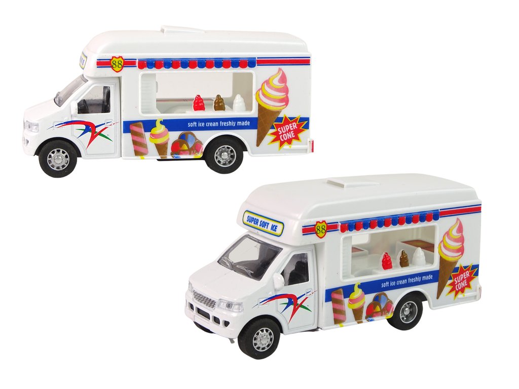Sada obsahuje dvě verze autíček. Jedna z nich funguje jako zmrzlinář, druhá jako vozidlo rychlého občerstvení. Staňte se řidičem, který potěší každé dítě, které potkáte na cestách, chutným jídlem. Karavany jsou vyrobeny v bílém barevném provedení se samolepkami specifickými pro daný model.
