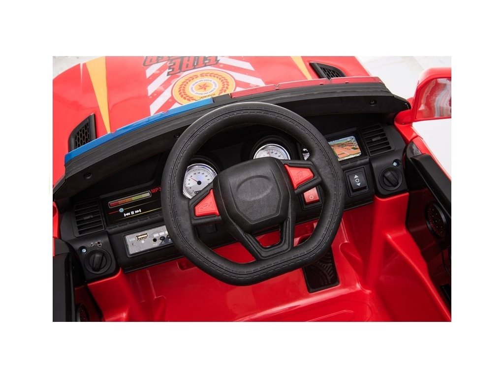 Dětské elektrické autíčko Hasiči s inovativním dálkovým ovládáním určeným pro rodiče. Elektrické autíčko má pohodlnou sedačku a pro bezpečnost dítěte je na sedačce umístěn bezpečnostní pas. Autíčko je vybaveno palubní deskou, volantem, svítícími předními světly a panelem audio. Vozidlo lze ovládat dvěma způsoby, bud' pomocí dálkového ovladače, který je určený pro rodiče, kdy rodič sám volí směr a rychlost jízdy nebo dítě může řídit autíčko zcela samostatně. Kola elektrického autíčka jsou měkká pěnová a umožňují tak plynulou a příjemnou jízdu.