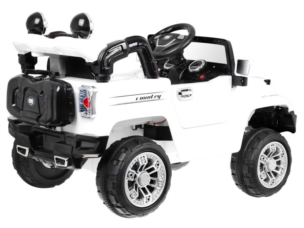 Nové elektrické autíčko Jeep 2019 s inovativním dálkovým ovládáním určeným pro rodiče. Autíčko má skvěle pohodlnou sedačku a pro bezpečnost dítěte je na sedačce umístěn bezpečnostní pas. Autíčko je také vybaveno hudební deskou, volantem a svítícími předními i zadními světly, otevíratelnými dveřmi a v zadní části kufříkem. Vozítko lze ovládat dvěma způsoby, bud' pomocí dálkového ovladače určeným pro rodiče, kdy rodič sám volí směr a rychlost jízdy dítěte anebo, kdy dítě řídí autíčko zcela samostatně. Kola jsou plastové s gumovým běhounem a gumovým lemem poskytující autíčku perfektní stabilitu v jakémkoliv terénu.